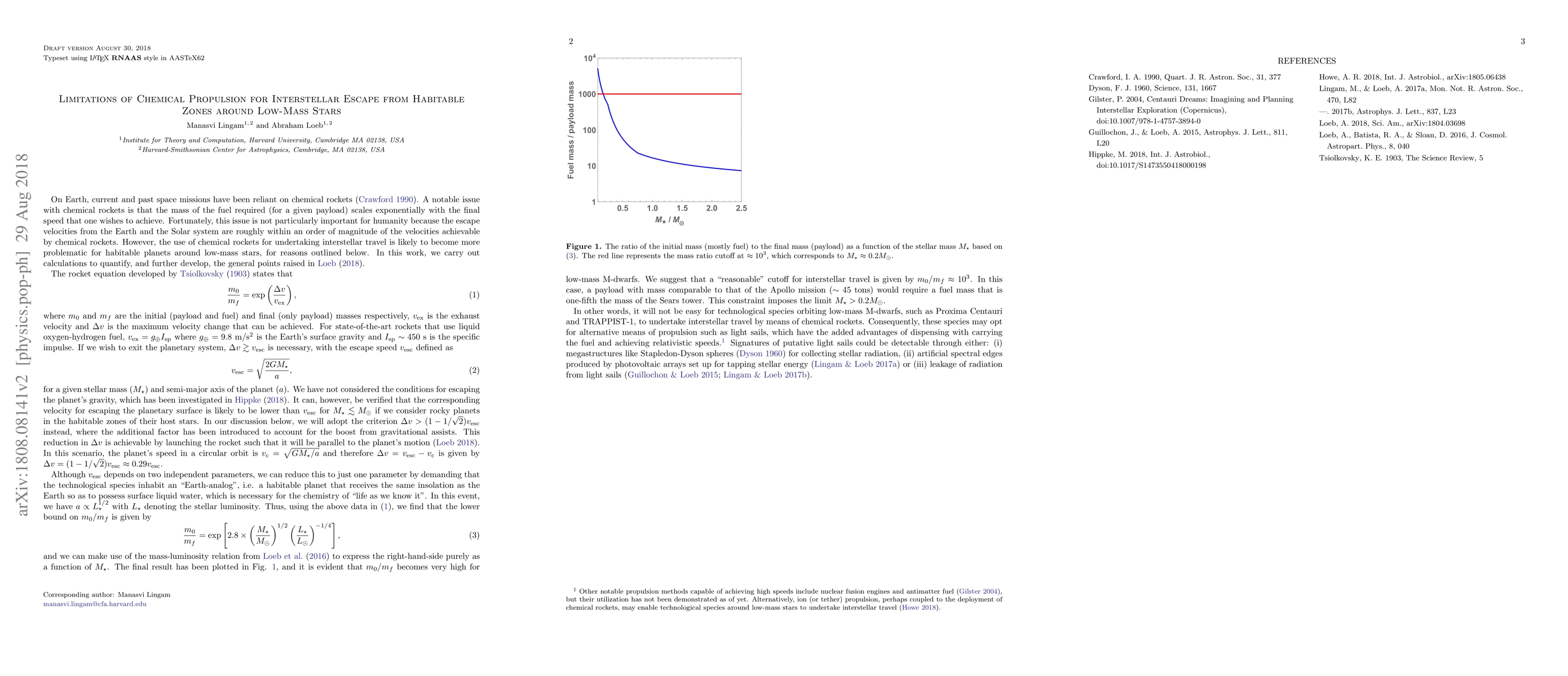 This paper explores the challenges of using chemical propulsion for interstellar travel from habitable zones around low-mass stars, highlighting the exponential increase in fuel needed due to higher escape speeds compared to Earth's orbit. It concludes that chemical rockets may not be feasible for such interstellar missions.