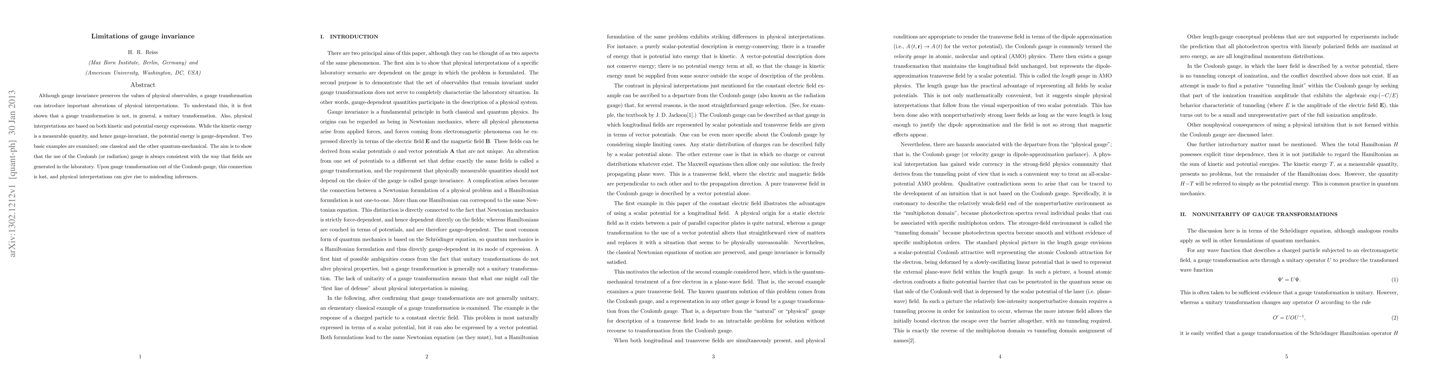A gauge transformation can alter physical interpretations even if it preserves observable values. The paper highlights the limitations of gauge invariance in classical and quantum mechanics.