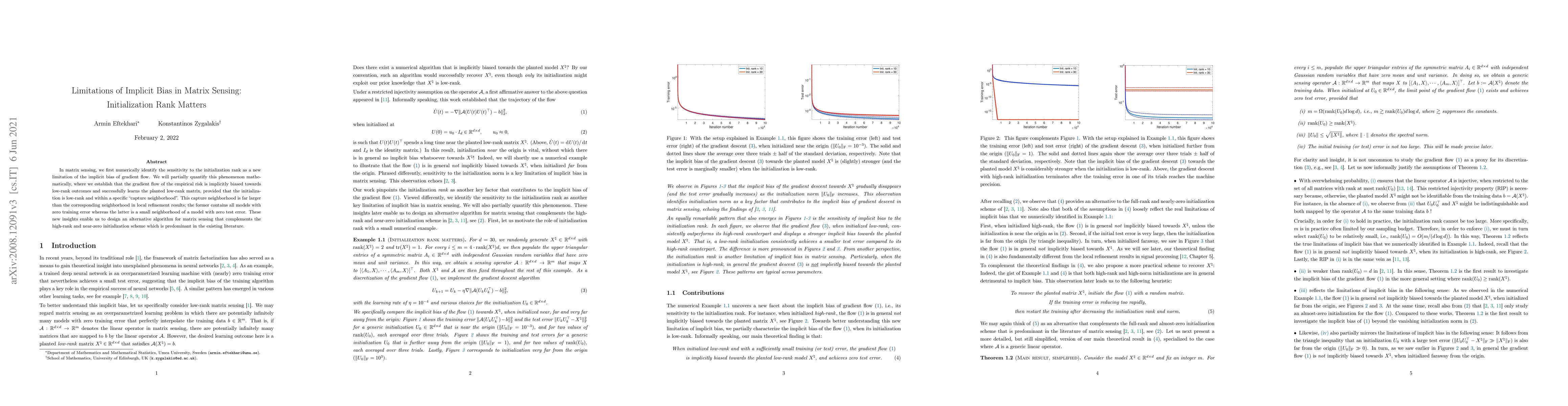 In matrix sensing, we first numerically identify the sensitivity to the initialization rank as a new limitation of the implicit bias of gradient flow. We will partially quantify this phenomenon mathematically, where we establish that the gradient flow of the empirical risk is implicitly biased towards low-rank outcomes and successfully learns the planted low-rank matrix, provided that the initialization is low-rank and within a specific "capture neighborhood". This capture neighborhood is far larger than the corresponding neighborhood in local refinement results; the former contains all models with zero training error whereas the latter is a small neighborhood of a model with zero test error. These new insights enable us to design an alternative algorithm for matrix sensing that complements the high-rank and near-zero initialization scheme which is predominant in the existing literature.