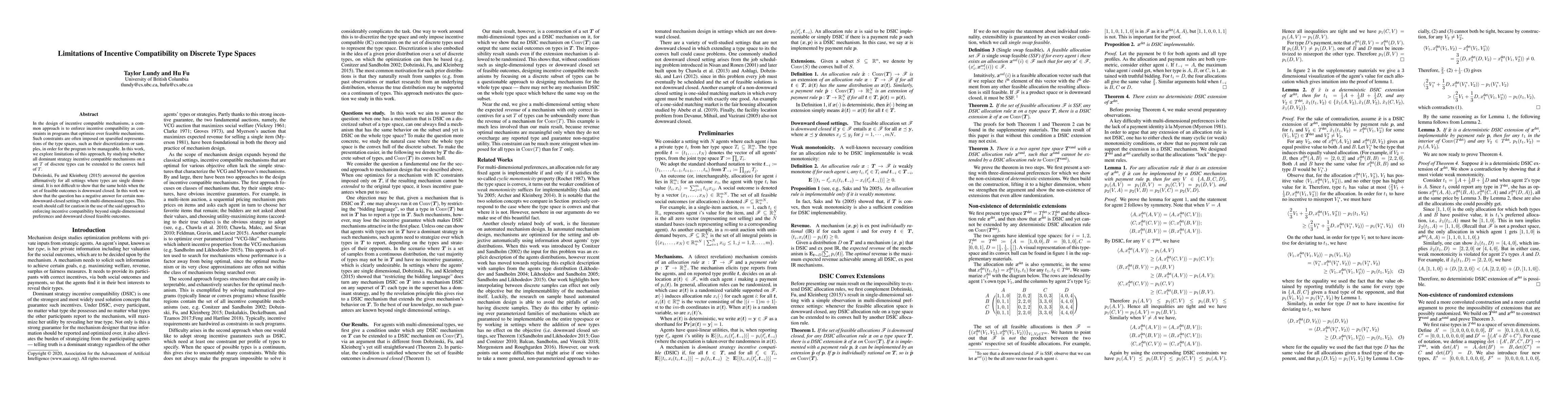 The paper explores limitations of enforcing incentive compatibility as constraints in programs optimizing over feasible mechanisms, particularly on discretized type spaces.