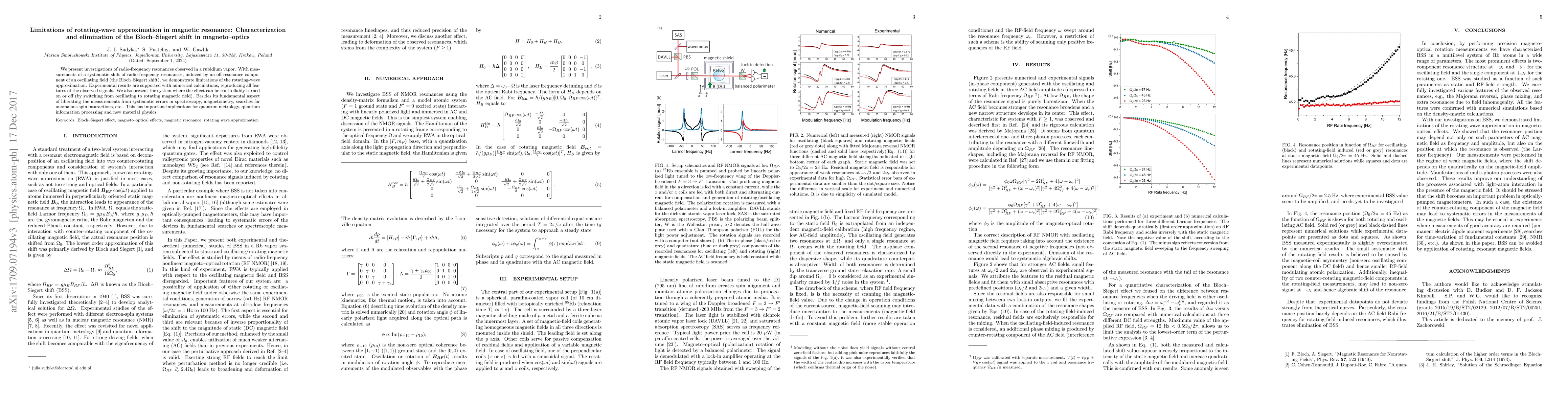 Researchers investigated radio-frequency resonances in rubidium vapor to demonstrate limitations of rotating-wave approximation, finding a systematic shift that affects spectroscopic measurements, and developed an experimental scheme to eliminate this issue.