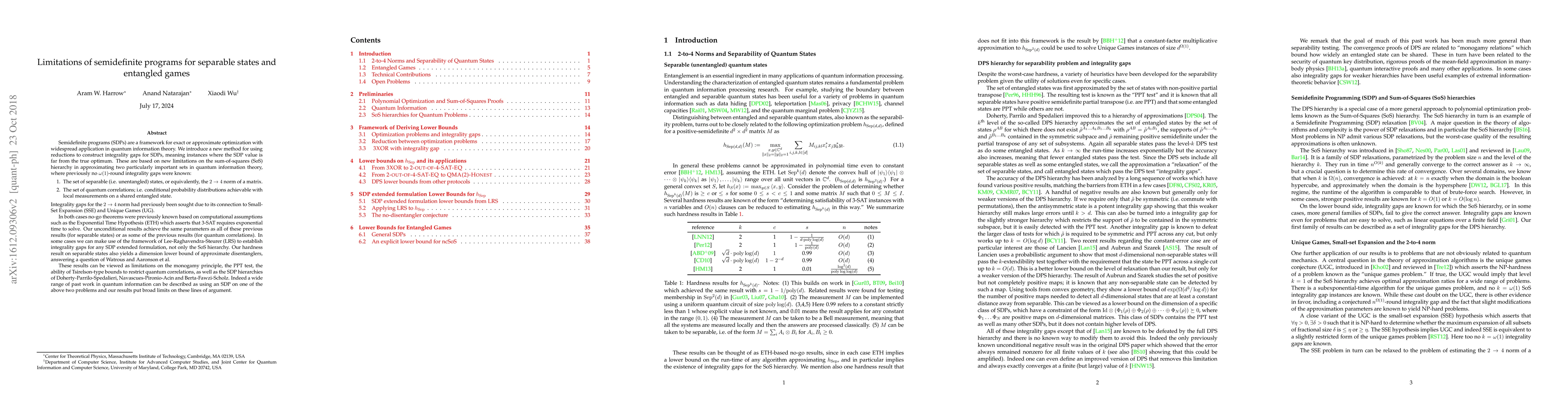 This paper presents new methods for constructing integrality gaps for semidefinite programs (SDPs) in quantum information theory, revealing limitations in approximating separable states and quantum correlations. It establishes unconditional results matching or surpassing previous computational assumptions, providing insights into the limitations of SDP hierarchies and the monogamy principle.