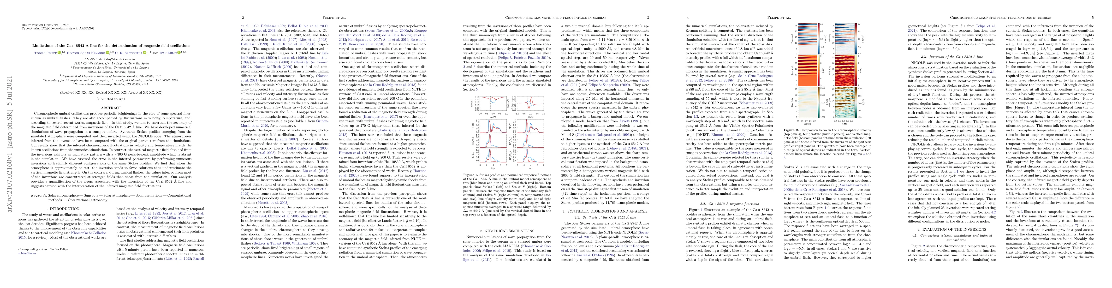 This study investigates the accuracy of magnetic field determinations from the Ca II 8542 Å line during chromospheric umbral oscillations, revealing significant discrepancies between inferred and actual magnetic field strengths. The analysis suggests caution in interpreting magnetic field fluctuations derived from this spectral line.