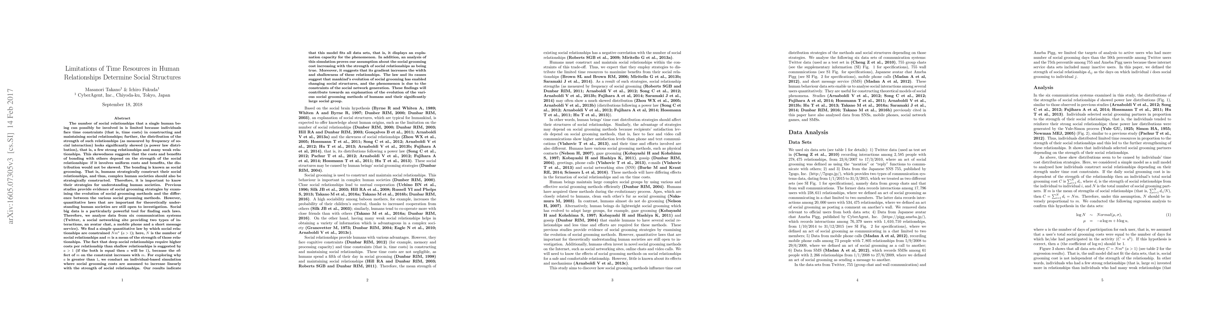 A single human can be involved in a limited number of social relationships, and the distribution of strengths of such relationships shows significant skew. This skewness suggests that the costs and benefits of the social interactions required to bond with others (social grooming) depend on the social relationship strength: if they involved uniform costs and benefits, the distribution would not be skew. Here, we show that the cost of social grooming increases with the social relationship strength, and its gradient determines the structures of these relationships in society as evident from an analysis of data from six communication systems. This may be due to an increase in communication volumes, such as number of characters and duration of calls, along with an increase in the social relationship strength. We tested this hypothesis using an individual-based simulation where social grooming costs were assumed to increase linearly with the social relationship strength; this is the simplest assumption. The results indicated that this model fitted all data sets, i.e., it showed an explanation capacity for the phenomenon. Additionally, an analysis of this simulation suggested that the gradient of social grooming costs increases the width and shallowness of social relationships in its communication system.