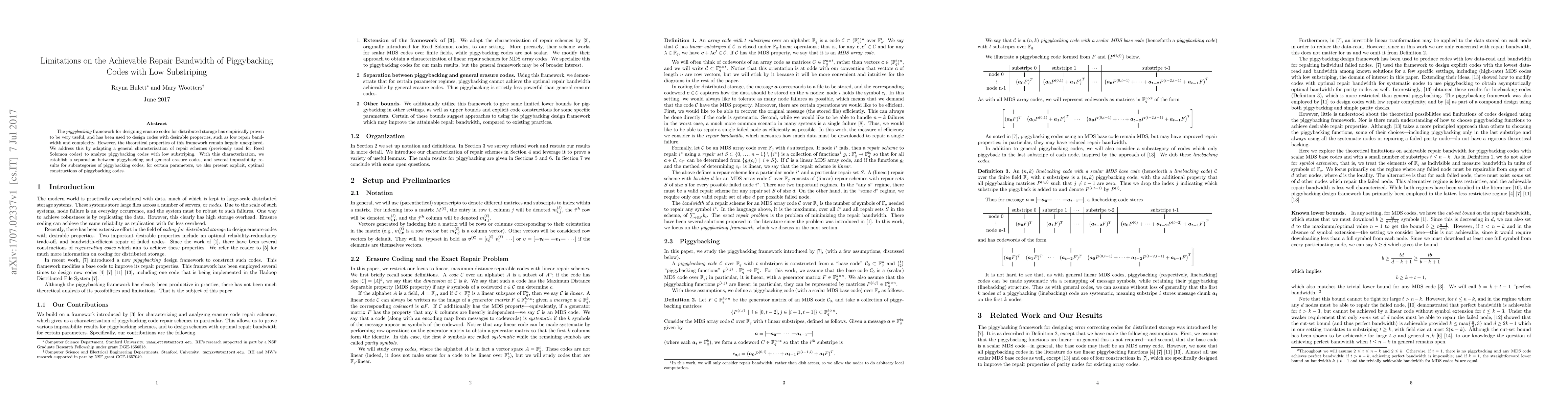 The paper introduces a characterization of repair schemes for piggybacking codes with low substriping, leading to theoretical insights and impossibility results that differentiate piggybacking codes from general erasure codes.