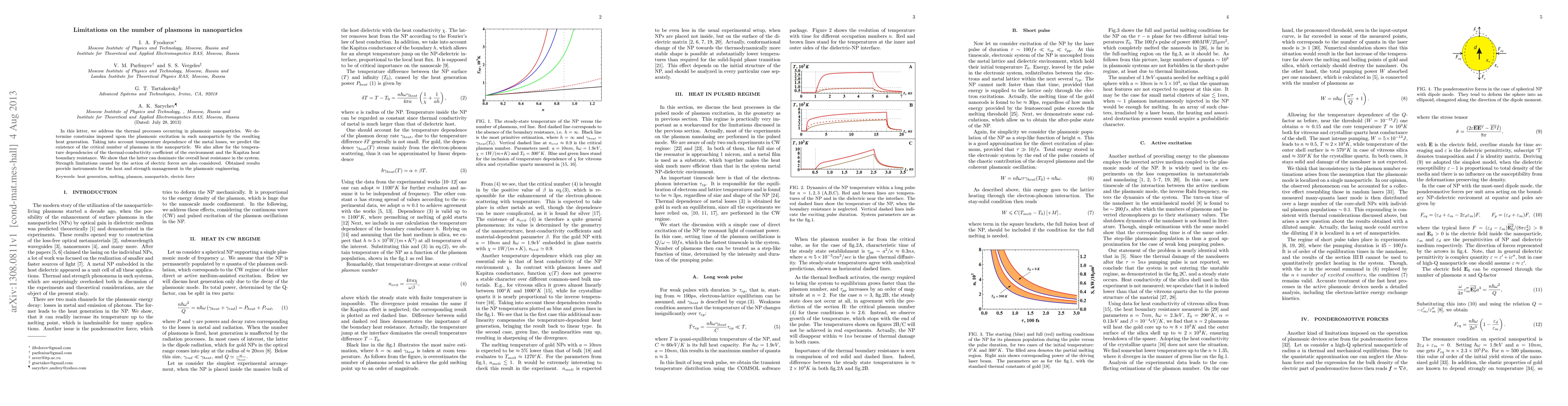 Researchers found a critical limit on the number of plasmons in nanoparticles due to heat generation, and proposed methods for managing heat and strength in plasmonic engineering.