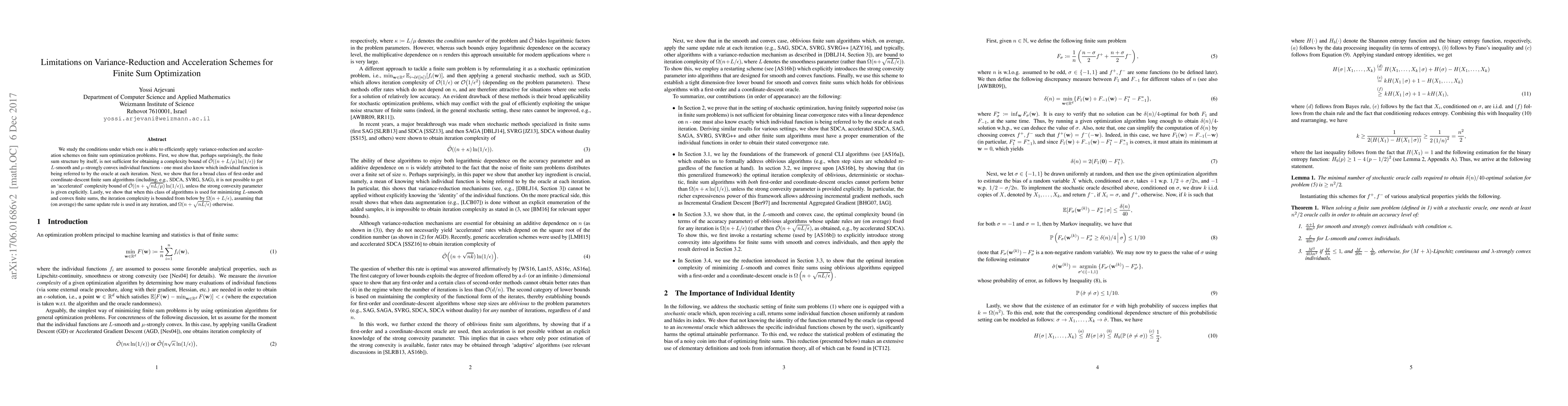 This paper explores the limitations of applying variance-reduction and acceleration schemes to finite sum optimization. It reveals that knowledge of individual functions and explicit strong convexity parameters are crucial for achieving optimal complexity bounds, and establishes the best achievable complexities for various algorithms under different conditions.