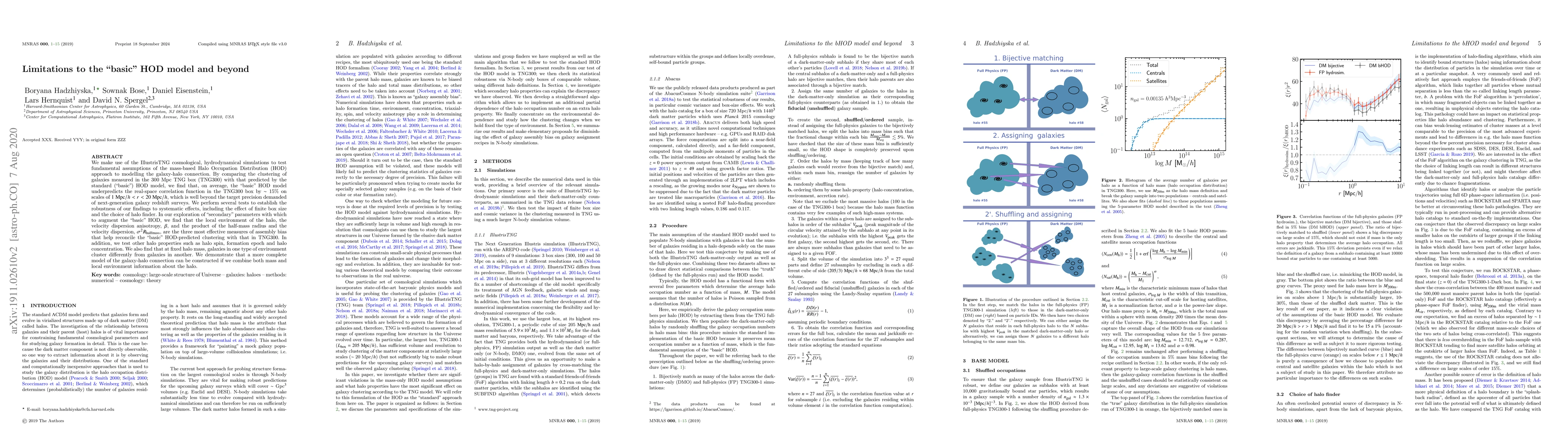 We make use of the IllustrisTNG cosmological, hydrodynamical simulations to test fundamental assumptions of the mass-based Halo Occupation Distribution (HOD) approach to modelling the galaxy-halo connection. By comparing the clustering of galaxies measured in the 300 Mpc TNG box (TNG300) with that predicted by the standard (``basic'') HOD model, we find that, on average, the ``basic'' HOD model underpredicts the real-space correlation function in the TNG300 box by $\sim$ 15\% on scales of $1 \ {\rm Mpc}/h < r < 20 \ {\rm Mpc}/h$, which is well beyond the target precision demanded of next-generation galaxy redshift surveys. We perform several tests to establish the robustness of our findings to systematic effects, including the effect of finite box size and the choice of halo finder. In our exploration of ``secondary'' parameters with which to augment the ``basic'' HOD, we find that the local environment of the halo, the velocity dispersion anisotropy, $\beta$, and the product of the half-mass radius and the velocity dispersion, $\sigma^2 R_{\rm halfmass}$, are the three most effective measures of assembly bias that help reconcile the ``basic'' HOD-predicted clustering with that in TNG300. In addition, we test other halo properties such as halo spin, formation epoch and halo concentration. We also find that at fixed halo mass, galaxies in one type of environment cluster differently from galaxies in another. We demonstrate that a more complete model of the galaxy-halo connection can be constructed if we combine both mass and local environment information about the halo.