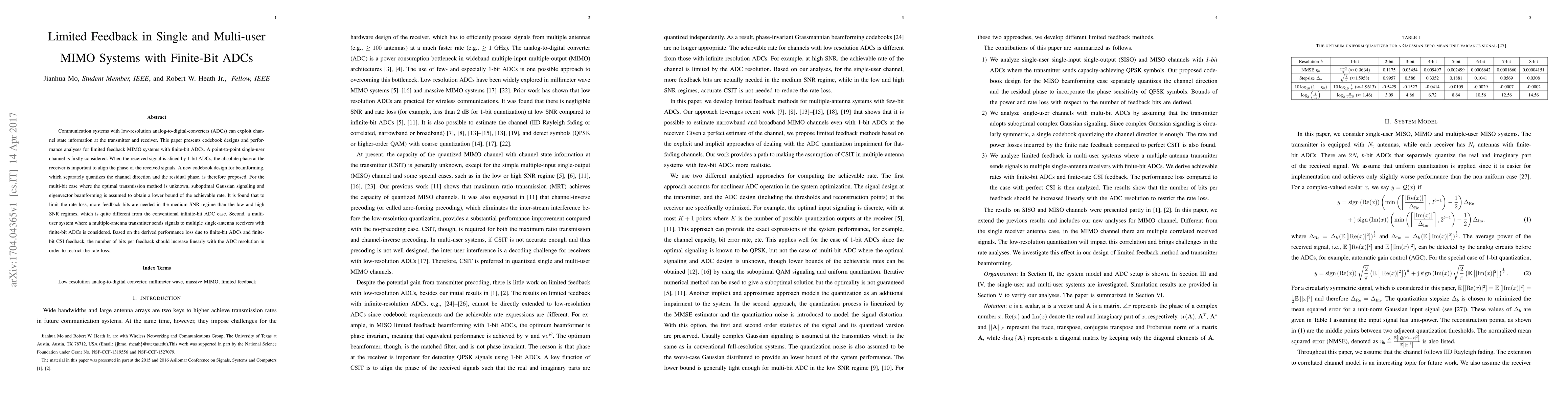 Communication systems with low-resolution analog-to-digital-converters (ADCs) can exploit channel state information at the transmitter and receiver. This paper presents codebook designs and performance analyses for limited feedback MIMO systems with finite-bit ADCs. A point-to-point single-user channel is firstly considered. When the received signal is sliced by 1-bit ADCs, the absolute phase at the receiver is important to align the phase of the received signals. A new codebook design for beamforming, which separately quantizes the channel direction and the residual phase, is therefore proposed. For the multi-bit case where the optimal transmission method is unknown, suboptimal Gaussian signaling and eigenvector beamforming is assumed to obtain a lower bound of the achievable rate. It is found that to limit the rate loss, more feedback bits are needed in the medium SNR regime than the low and high SNR regimes, which is quite different from the conventional infinite-bit ADC case. Second, a multi-user system where a multiple-antenna transmitter sends signals to multiple single-antenna receivers with finite-bit ADCs is considered. Based on the derived performance loss due to finite-bit ADCs and finite-bit CSI feedback, the number of bits per feedback should increase linearly with the ADC resolution in order to restrict the rate loss.