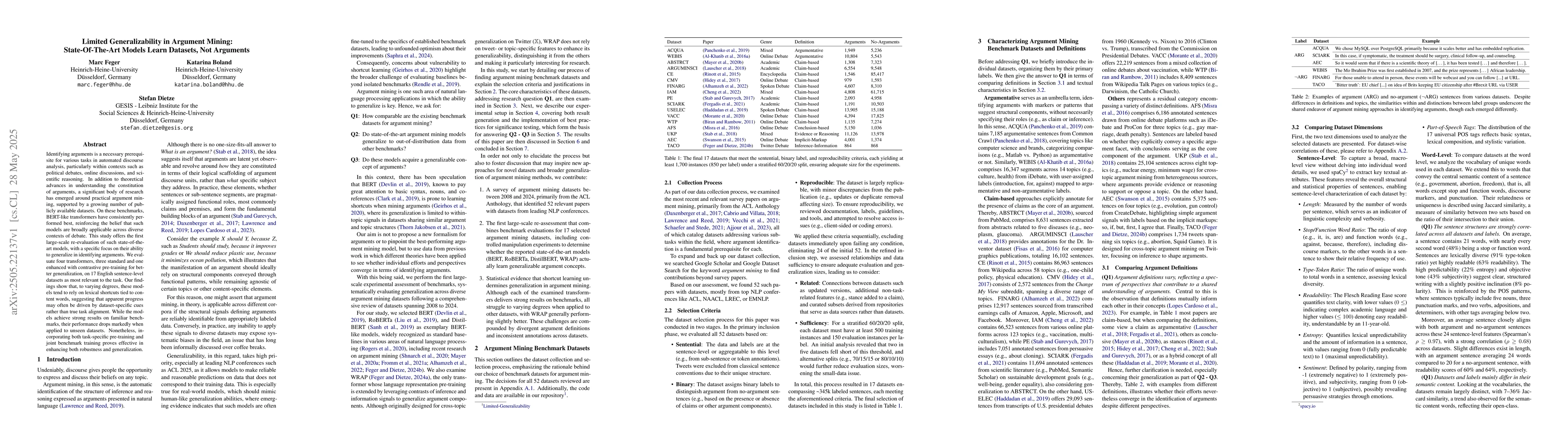 Provides the first large-scale re-evaluation of argument mining models, revealing their limited generalizability and proposing solutions to improve their robustness.
