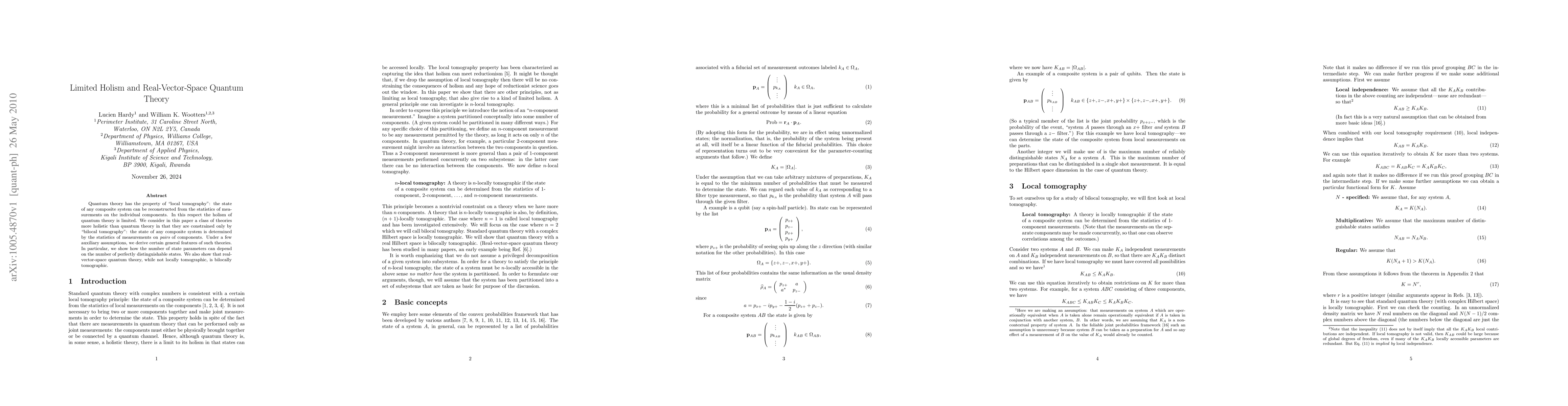 This paper explores theories that are more holistic than quantum theory by introducing "bilocal tomography," where the state of a composite system is determined by measurements on pairs of components. It demonstrates that real-vector-space quantum theory, though not locally tomographic, adheres to bilocal tomography.