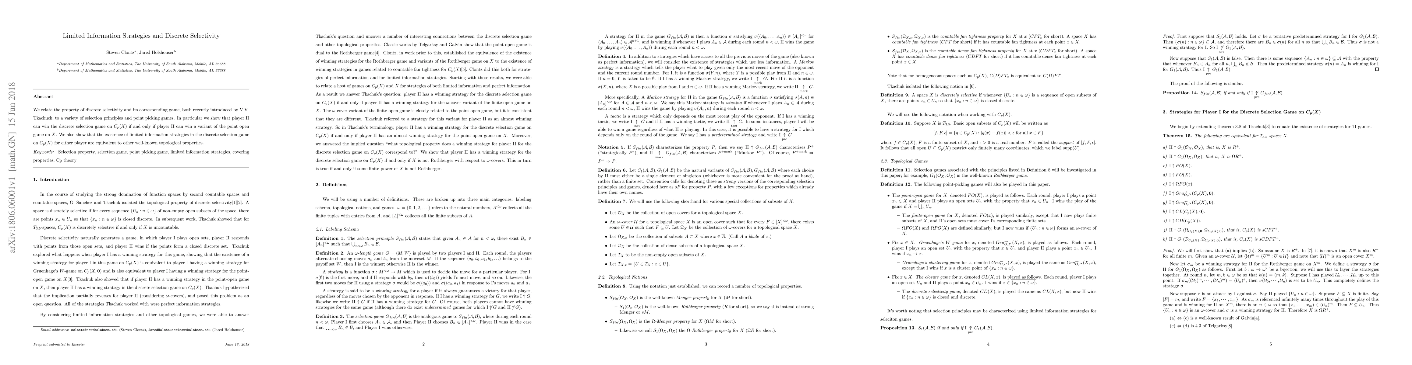 We relate the property of discrete selectivity and its corresponding game, both recently introduced by V.V. Tkachuck, to a variety of selection principles and point picking games. In particular we show that player II can win the discrete selection game on \(C_p(X)\) if and only if player II can win a variant of the point open game on \(X\). We also show that the existence of limited information strategies in the discrete selection game on \(C_p(X)\) for either player are equivalent to other well-known topological properties.