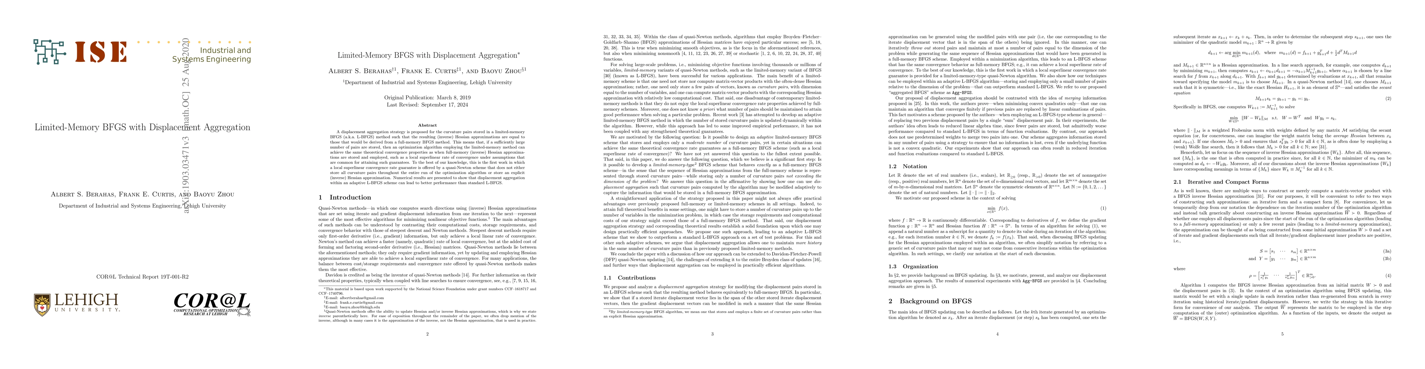 This paper proposes a displacement aggregation strategy for limited-memory BFGS (L-BFGS) to achieve the same convergence properties as full-memory BFGS. Numerical results show improved performance over standard L-BFGS, offering the first local superlinear convergence rate guarantee for a quasi-Newton method without storing all curvature pairs or an explicit Hessian approximation.