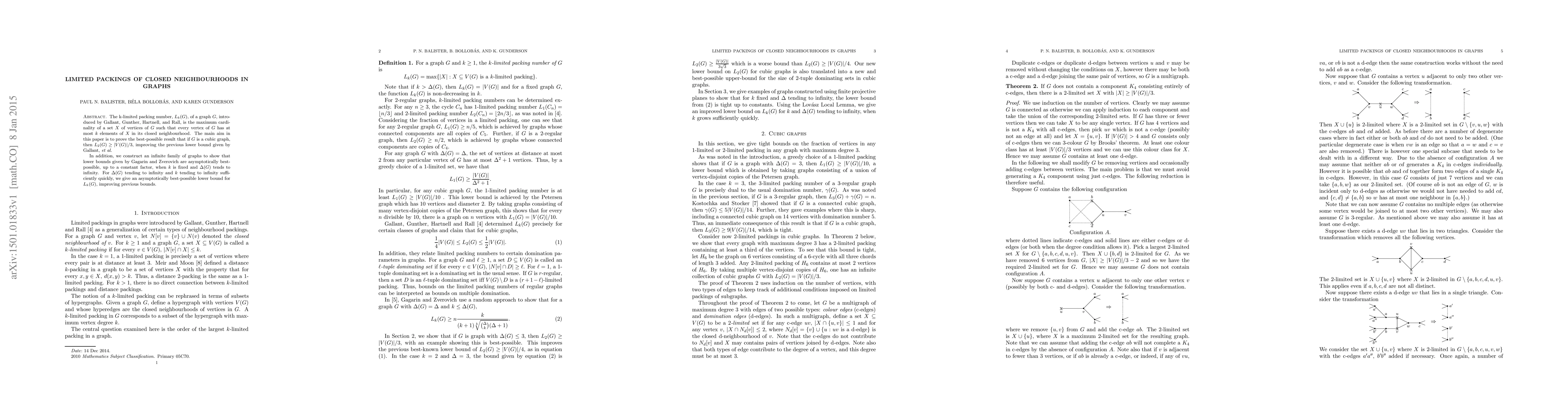 The k-limited packing number, $L_k(G)$, of a graph $G$, introduced by Gallant, Gunther, Hartnell, and Rall, is the maximum cardinality of a set $X$ of vertices of $G$ such that every vertex of $G$ has at most $k$ elements of $X$ in its closed neighbourhood. The main aim in this paper is to prove the best-possible result that if $G$ is a cubic graph, then $L_2(G) \geq |V (G)|/3$, improving the previous lower bound given by Gallant, \emph{et al.} In addition, we construct an infinite family of graphs to show that lower bounds given by Gagarin and Zverovich are asymptotically best-possible, up to a constant factor, when $k$ is fixed and $\Delta(G)$ tends to infinity. For $\Delta(G)$ tending to infinity and $k$ tending to infinity sufficiently quickly, we give an asymptotically best-possible lower bound for $L_k(G)$, improving previous bounds.