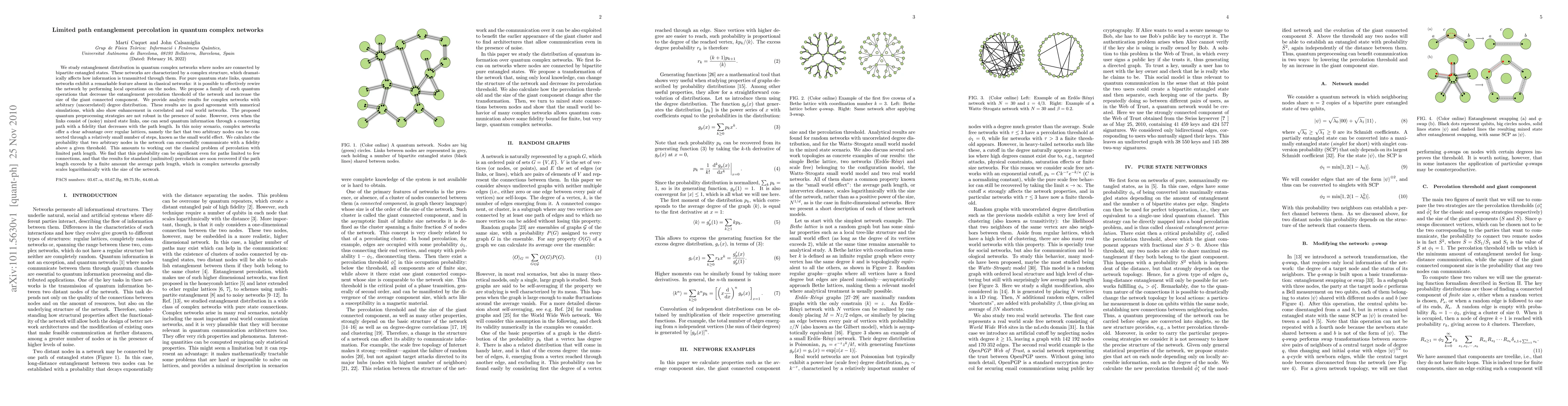 We study entanglement distribution in quantum complex networks where nodes are connected by bipartite entangled states. These networks are characterized by a complex structure, which dramatically affects how information is transmitted through them. For pure quantum state links, quantum networks exhibit a remarkable feature absent in classical networks: it is possible to effectively rewire the network by performing local operations on the nodes. We propose a family of such quantum operations that decrease the entanglement percolation threshold of the network and increase the size of the giant connected component. We provide analytic results for complex networks with arbitrary (uncorrelated) degree distribution. These results are in good agreement with numerical simulations, which also show enhancement in correlated and real world networks. The proposed quantum preprocessing strategies are not robust in the presence of noise. However, even when the links consist of (noisy) mixed state links, one can send quantum information through a connecting path with a fidelity that decreases with the path length. In this noisy scenario, complex networks offer a clear advantage over regular lattices, namely the fact that two arbitrary nodes can be connected through a relatively small number of steps, known as the small world effect. We calculate the probability that two arbitrary nodes in the network can successfully communicate with a fidelity above a given threshold. This amounts to working out the classical problem of percolation with limited path length. We find that this probability can be significant even for paths limited to few connections, and that the results for standard (unlimited) percolation are soon recovered if the path length exceeds by a finite amount the average path length, which in complex networks generally scales logarithmically with the size of the network.