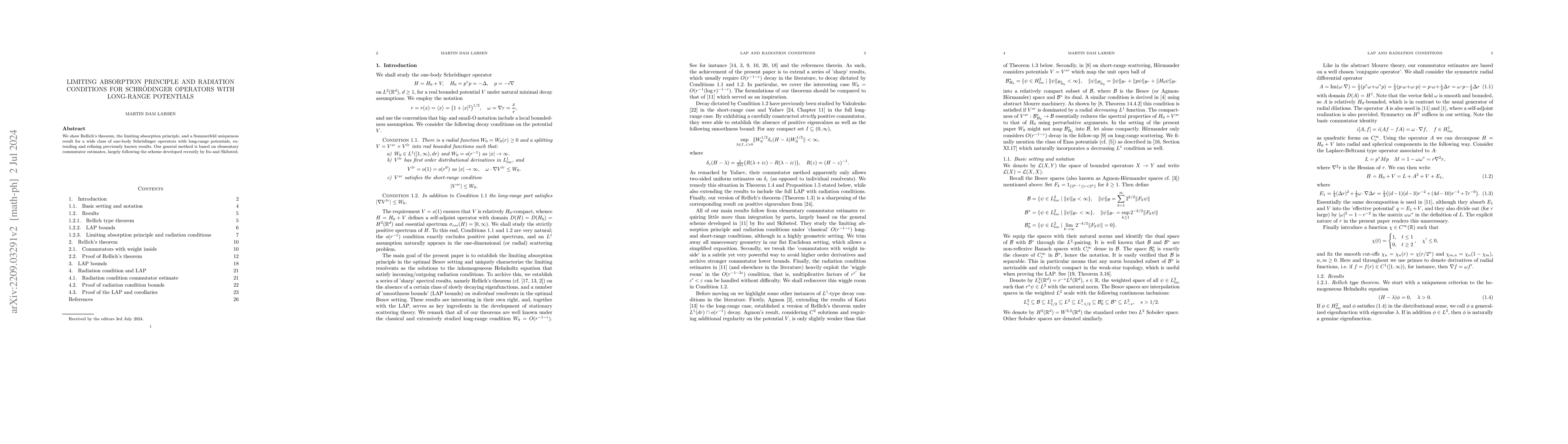 Summary: This paper extends Rellich's theorem, the limiting absorption principle, and a Sommerfeld uniqueness result for Schrödinger operators with long-range potentials using elementary commutator estimates, refining prior work and employing a method developed by Ito and Skibsted.