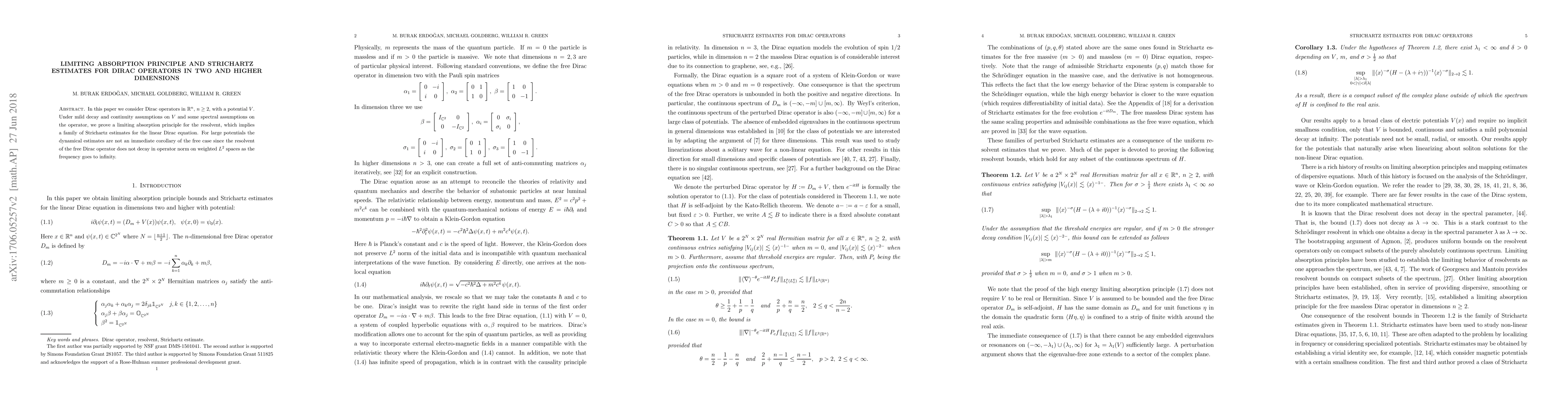 This paper proves a limiting absorption principle for Dirac operators in $\mathbb R^n$ with potential $V$, leading to Strichartz estimates for the linear Dirac equation. Unlike the free case, the resolvent does not decay in operator norm for large potentials, necessitating new dynamical estimates.