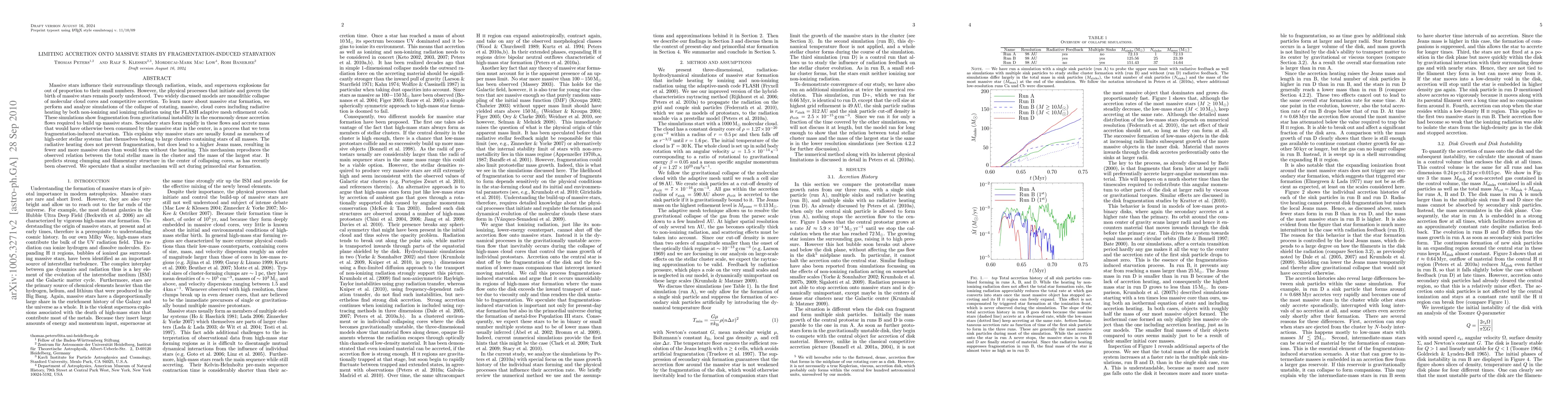 This paper investigates the formation of massive stars through simulations showing that fragmentation in dense accretion flows leads to secondary stars forming and accreting mass, a process termed fragmentation-induced starvation, which limits the growth of central massive stars and explains their association with high-order stellar systems. Radiative heating increases the Jeans mass, resulting in fewer but more massive stars.