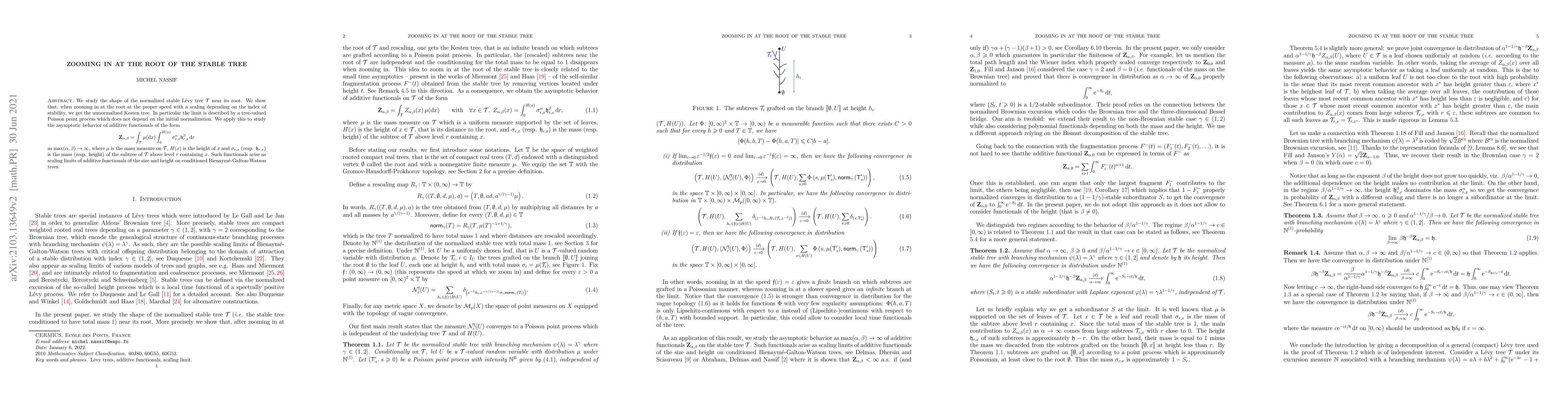 We study the shape of the normalized stable L\'{e}vy tree $\mathcal{T}$ near its root. We show that, when zooming in at the root at the proper speed with a scaling depending on the index of stability, we get the unnormalized Kesten tree. In particular the limit is described by a tree-valued Poisson point process which does not depend on the initial normalization. We apply this to study the asymptotic behavior of additive functionals of the form \[\mathbf{Z}_{\alpha,\beta}=\int_{\mathcal{T}} \mu(\mathrm{d} x) \int_0^{H(x)} \sigma_{r,x}^\alpha \mathfrak{h}_{r,x}^\beta\,\mathrm{d} r\]as $\max(\alpha,\beta) \to \infty$, where $\mu$ is the mass measure on $\mathcal{T}$, $H(x)$ is the height of $x$ and $\sigma_{r,x}$ (resp. $\mathfrak{h}_{r,x}$) is the mass (resp. height) of the subtree of $\mathcal{T}$ above level $r$ containing $x$. Such functionals arise as scaling limits of additive functionals of the size and height on conditioned Bienaym{\'e}-Galton-Watson trees.
