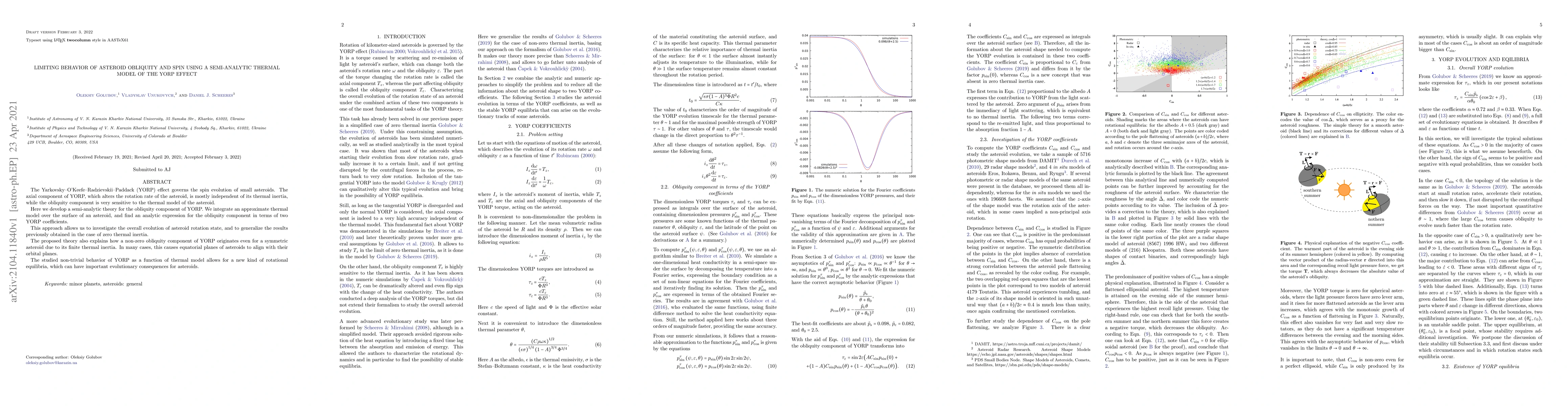 This paper develops a semi-analytic model for the obliquity component of the YORP effect, explaining how thermal inertia influences asteroid rotation. It reveals new rotational equilibria and the alignment of asteroid equatorial planes with orbital planes, offering insights into asteroid spin evolution.