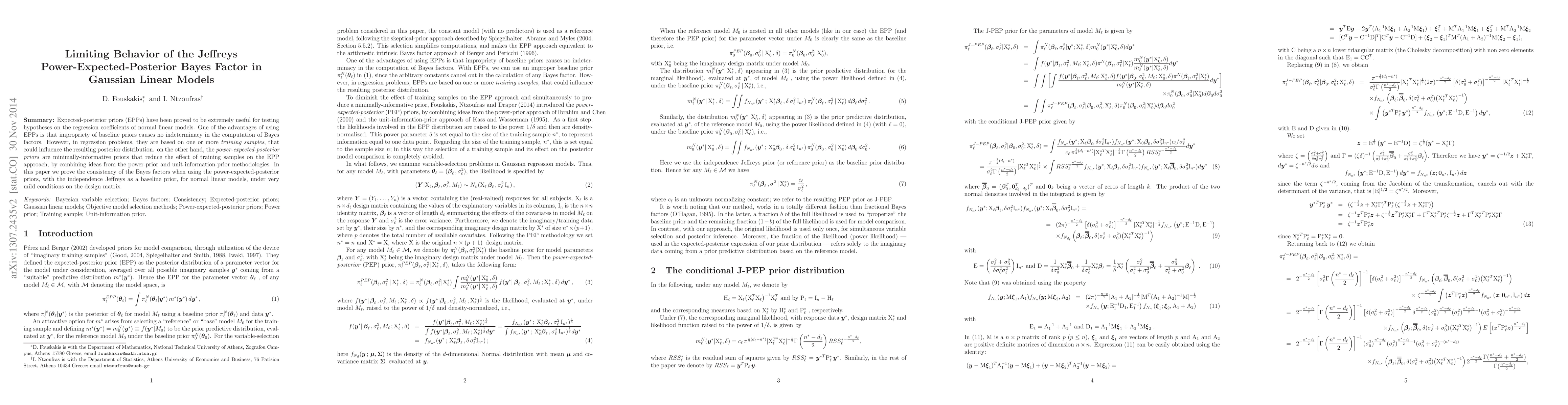 This paper investigates the limiting behavior of the Jeffreys Power-Expected-Posterior Bayes Factor in Gaussian linear models, demonstrating its consistency with the independence Jeffreys prior under mild design matrix conditions. The study highlights the effectiveness of power-expected-posterior priors in mitigating the influence of training samples on posterior distributions.
