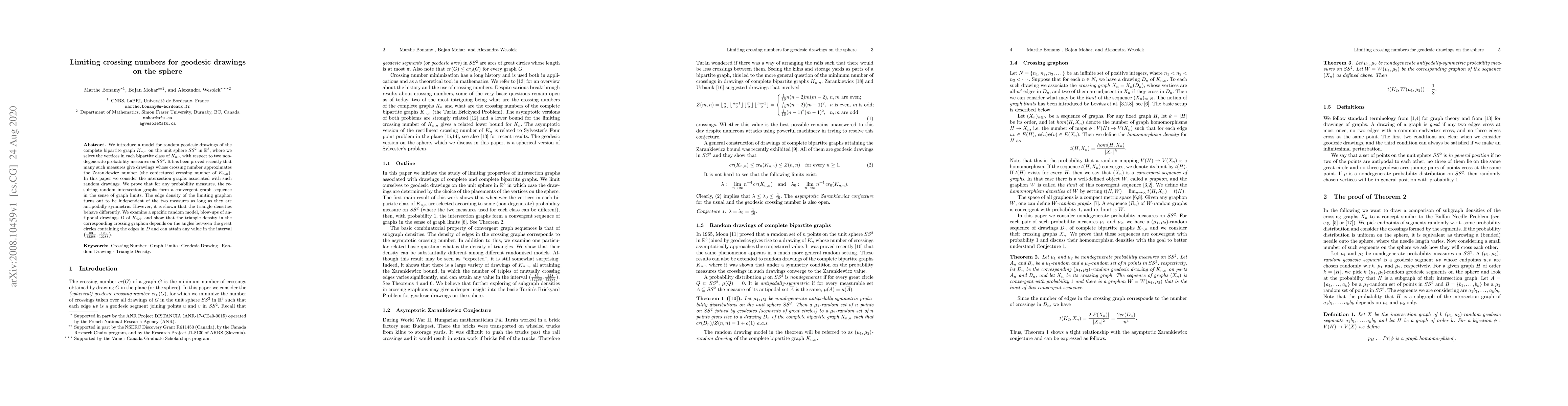 Researchers study how to draw complete bipartite graphs on a sphere in a way that minimizes crossings, finding a range of possible triangle densities for the resulting intersection graph.