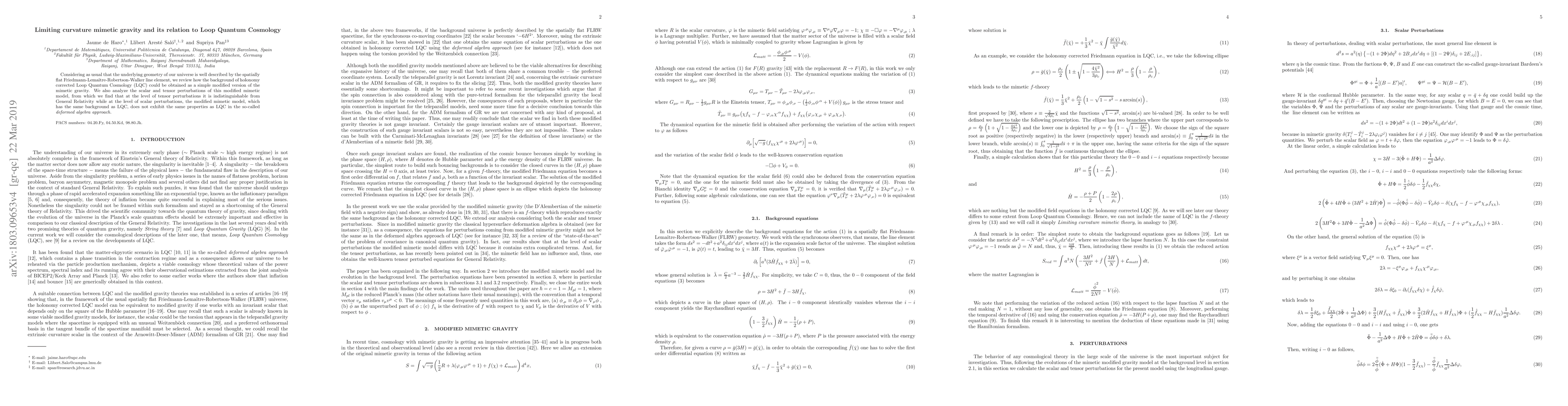 A study compares Loop Quantum Cosmology (LQC) with a modified mimetic gravity model, finding that while they share the same background geometry, the two models differ in their scalar perturbations.