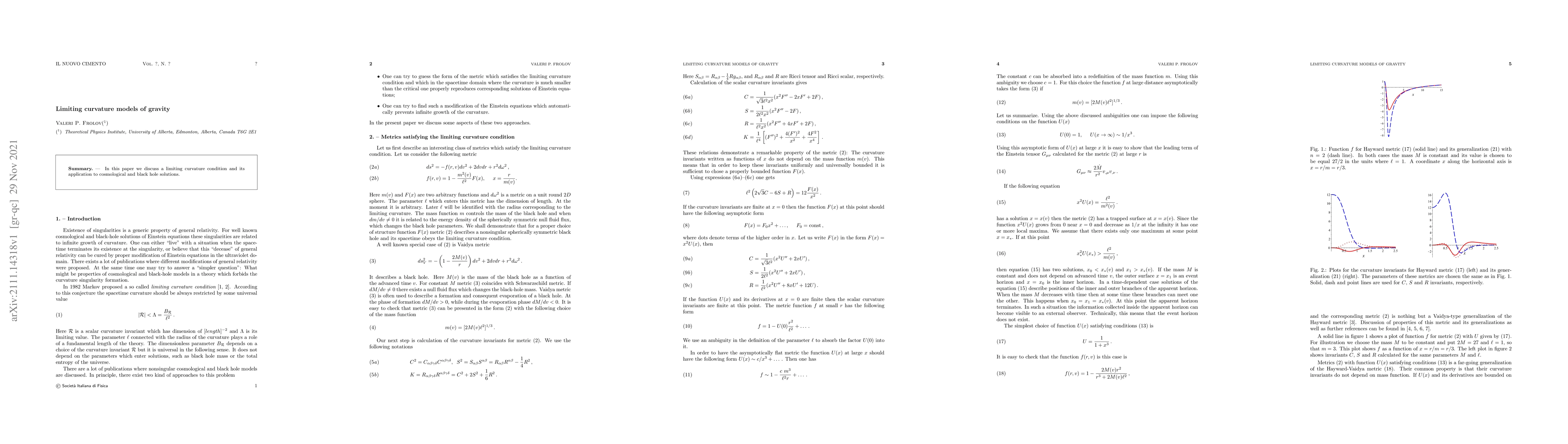 This paper discusses a limiting curvature condition that affects cosmological models and black holes, exploring its implications on their behavior.