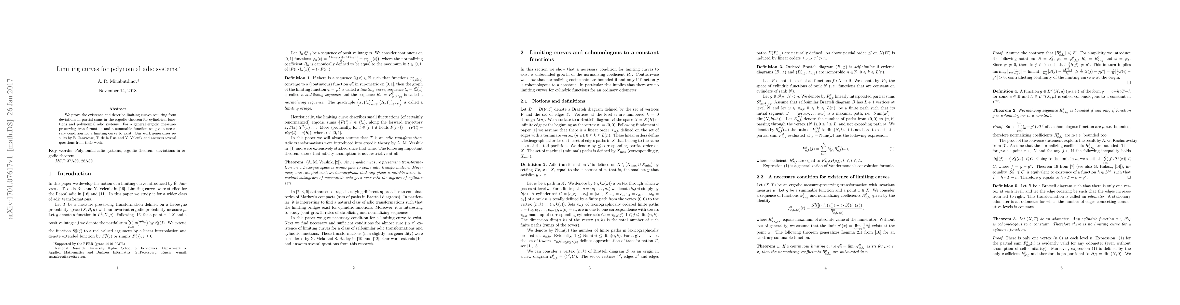 This paper proves the existence and describes limiting curves in polynomial adic systems, generalizing previous results and answering open questions. It provides a necessary condition for such curves to exist in ergodic measure-preserving transformations.
