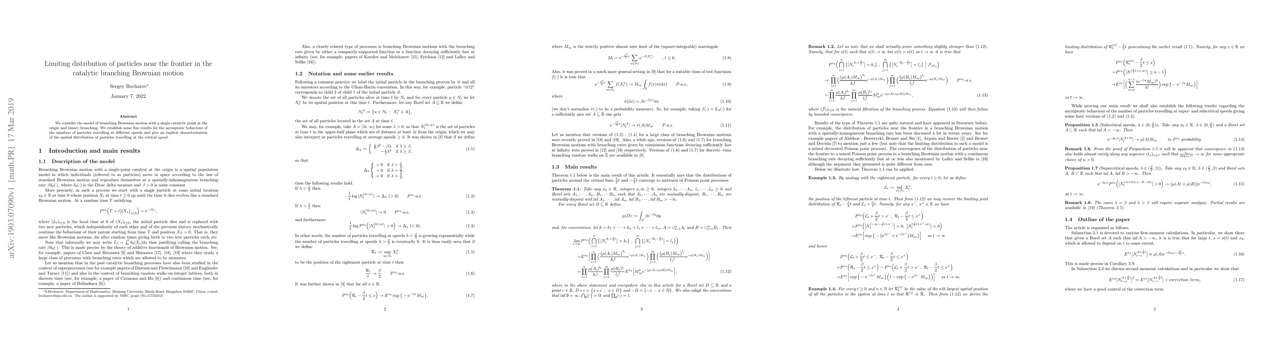 This paper investigates the catalytic branching Brownian motion model, focusing on the limiting distribution of particles near the origin. It provides detailed results on the asymptotic behavior of particles at different speeds and explicitly characterizes the spatial distribution of particles traveling at the critical speed.