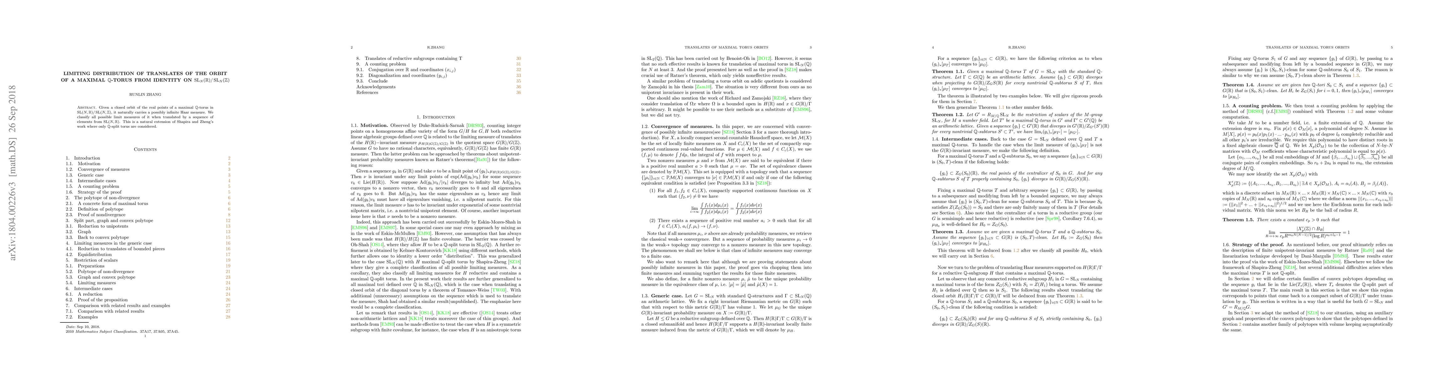 This paper classifies the limiting distributions of translates of the orbit of a maximal $\mathbb{Q}$-torus in $SL(N,\mathbb{R})/SL(N,\mathbb{Z})$, extending previous work that focused on $\mathbb{Q}$-split tori. The study reveals all possible limit measures under translations by elements from $SL(N,\mathbb{R})$.