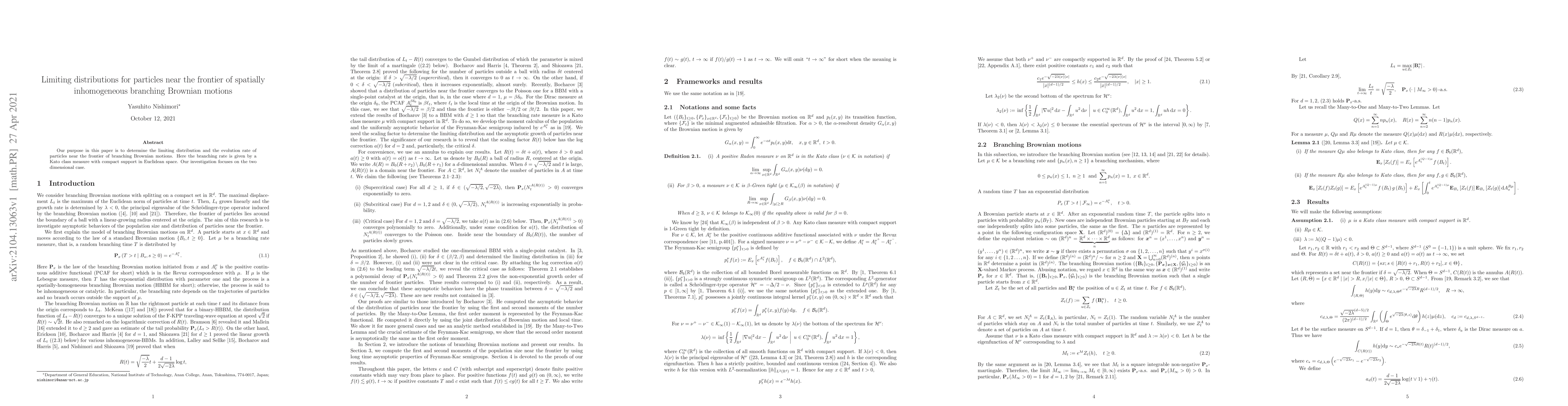 Our purpose in this paper is to determine the limiting distribution and the evolution rate of particles near the frontier of branching Brownian motions. Here the branching rate is given by a Kato class measure with compact support in Euclidean space. Our investigation focuses on the two dimensional case.