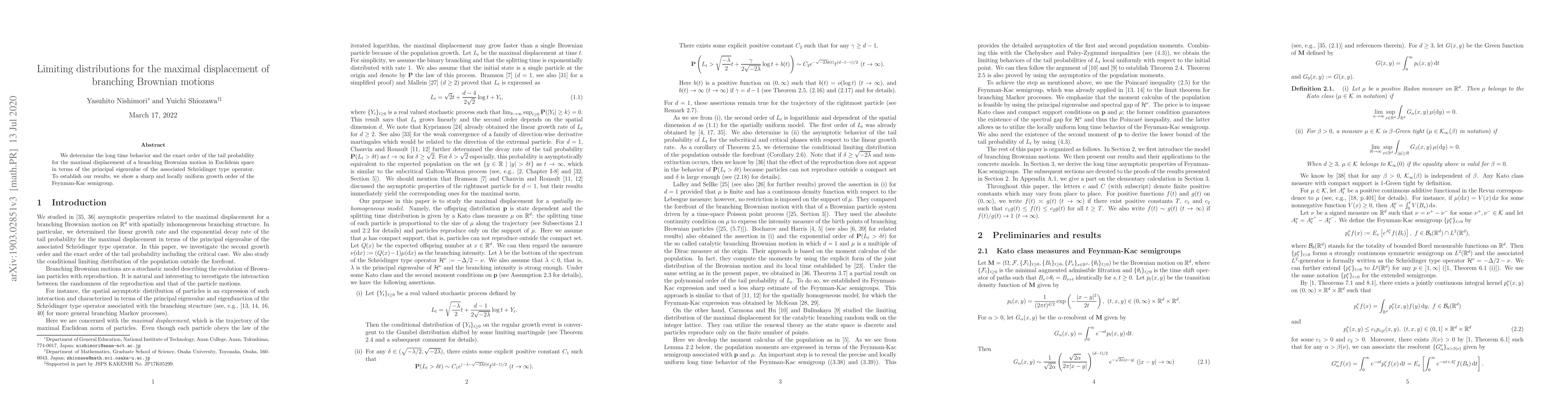 Summary: This paper investigates the long-term behavior of the maximal displacement in branching Brownian motion, determining its tail probability and linking it to the principal eigenvalue of a Schrödinger operator, while demonstrating the sharp growth order of the Feynman-Kac semigroup.