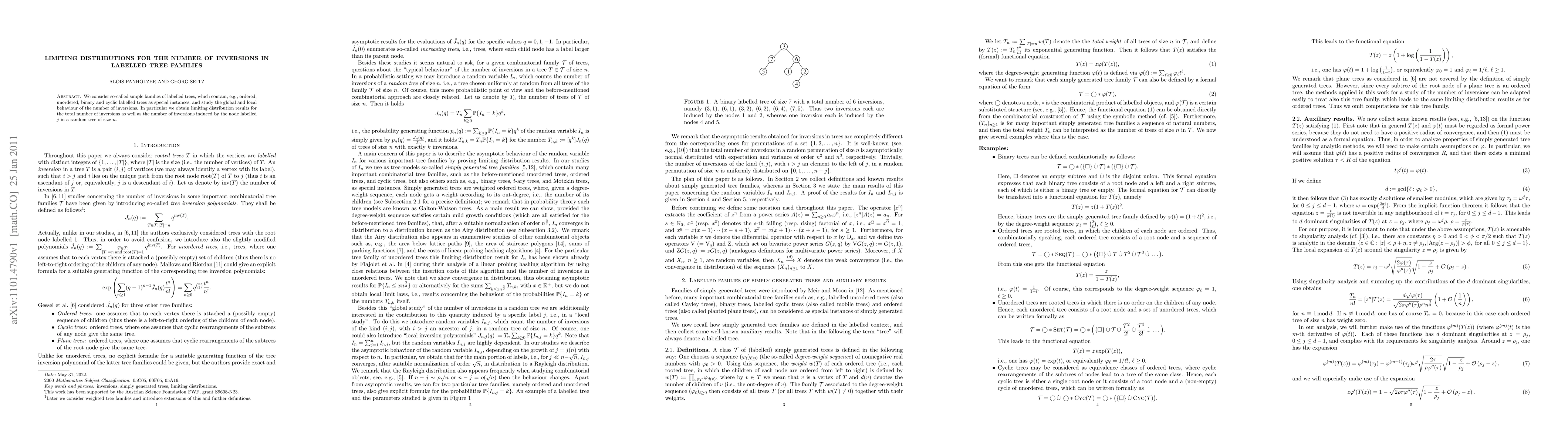 This paper investigates the limiting distributions for the number of inversions in various families of labelled trees, including ordered, unordered, binary, and cyclic trees. It provides results for both the total number of inversions and those induced by a specific node label in a random tree of size n.