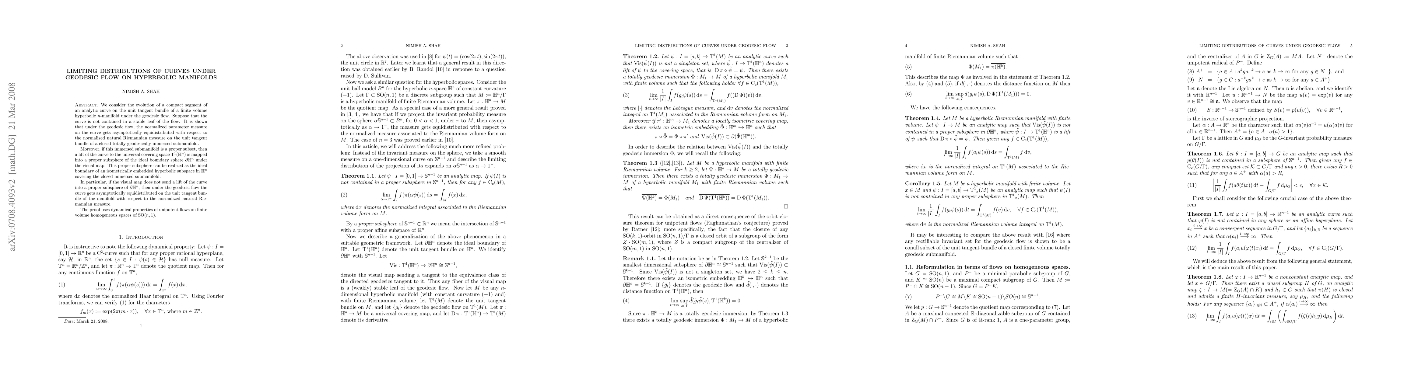 This paper investigates the limiting behavior of analytic curves under geodesic flow on hyperbolic manifolds, showing that the normalized parameter measure of the curve asymptotically equidistributes with respect to the natural Riemannian measure on the unit tangent bundle. If the curve does not map to a proper subsphere in the ideal boundary, it equidistributes on the entire manifold. The proof leverages dynamical properties of unipotent flows on homogeneous spaces.