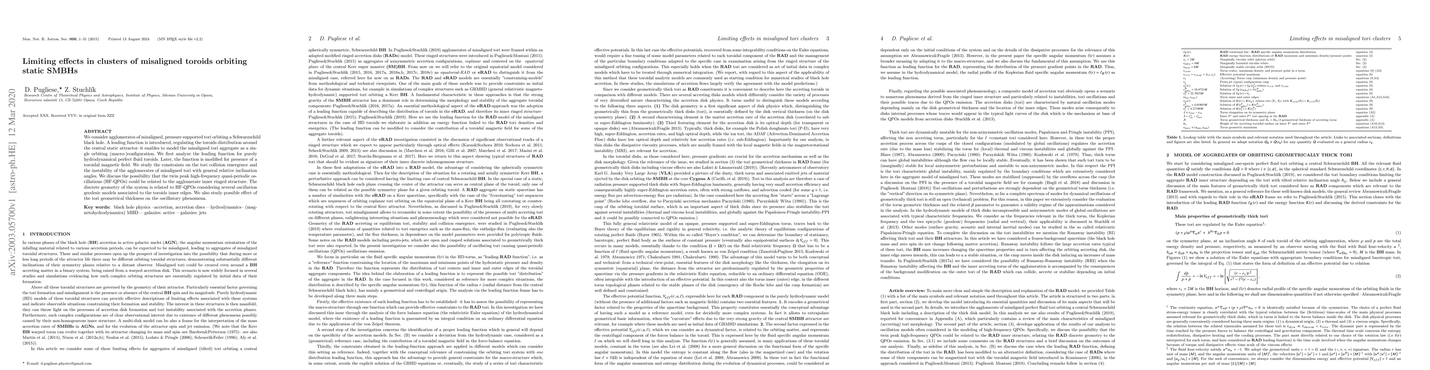 We consider agglomerates of misaligned, pressure supported tori orbiting a Schwarzschild black hole. A leading function is introduced, regulating the toroids distribution around the central static attractor-it enables to model the misaligned tori aggregate as a single orbiting (macro--)configuration. We first analyze the leading function for purely hydrodynamical perfect fluid toroids. Later, the function is modified for presence of a toroidal magnetic field. We study the constraints on the tori collision emergence and the instability of the agglomerates of misaligned tori with general relative inclination angles. We discuss the possibility that the twin peak high-frequency quasi-periodic oscillations (HF-QPOs) could be related to the agglomerate inner ringed structure. The discrete geometry of the system is related to HF-QPOs considering several oscillation geodesic models associated to the toroids inner edges. We also study possible effect of the tori geometrical thickness on the oscillatory phenomena.