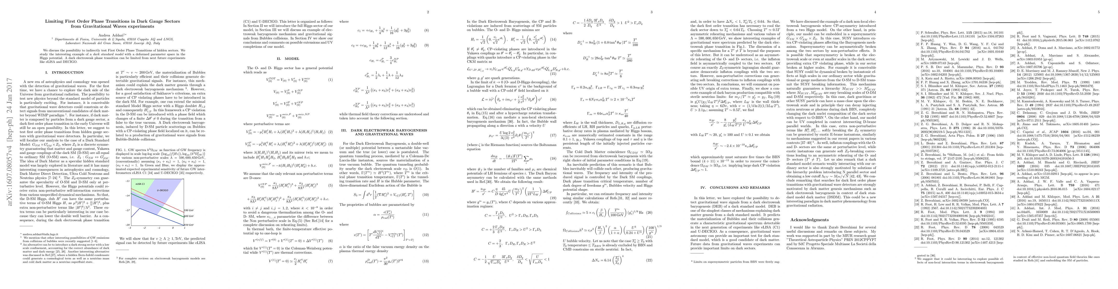 Research suggests that future gravitational wave experiments like eLISA and DECIGO may be able to detect dark electroweak phase transitions in a 'dark standard model', potentially limiting first-order phase transitions.