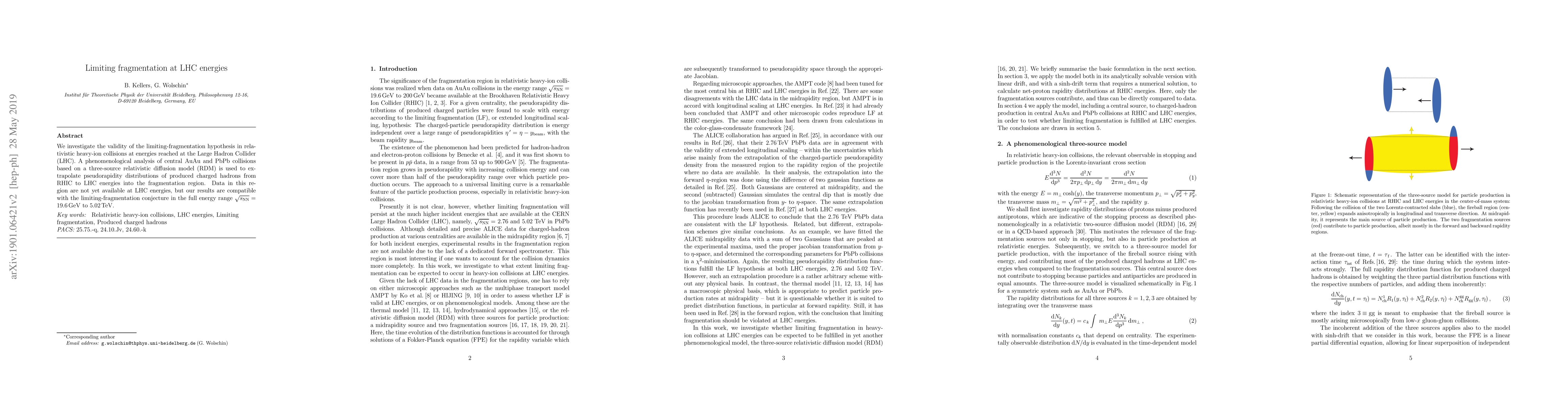 This study examines the limiting-fragmentation hypothesis across LHC energy scales in heavy-ion collisions using a three-source relativistic diffusion model (RDM). The analysis, extrapolating from RHIC data, supports the hypothesis from sqrt(s_NN) = 19.6 GeV to 5.02 TeV, despite lacking direct LHC data in the fragmentation region.