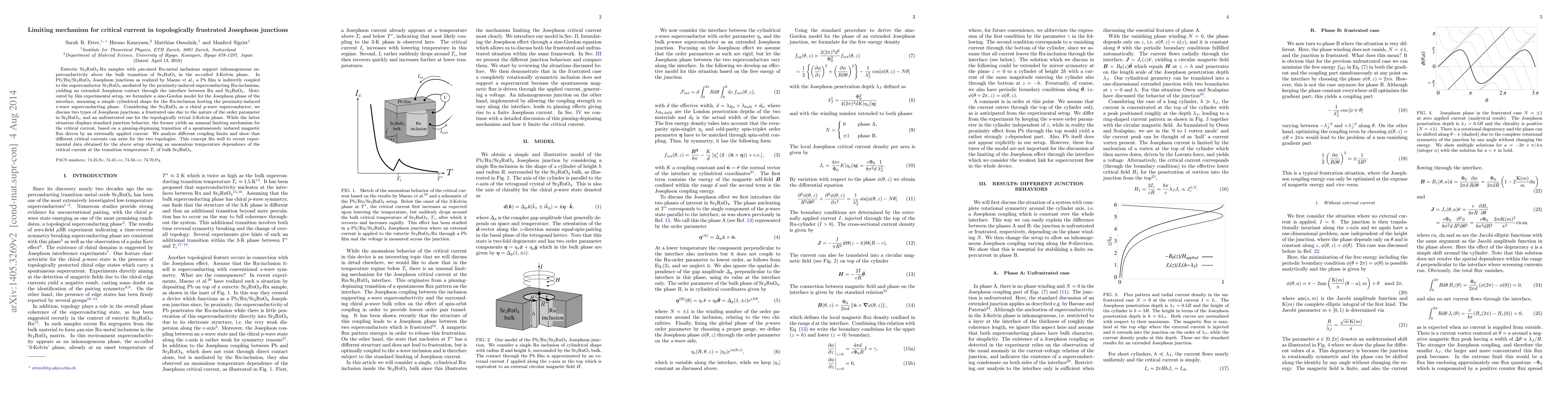 The research proposes a sine-Gordon model for Josephson junctions in Sr2RuO4, revealing that topological frustration induces an unusual critical current limiting mechanism via magnetic flux pinning-depinning. This model aligns with experimental anomalies in critical current temperature dependence.