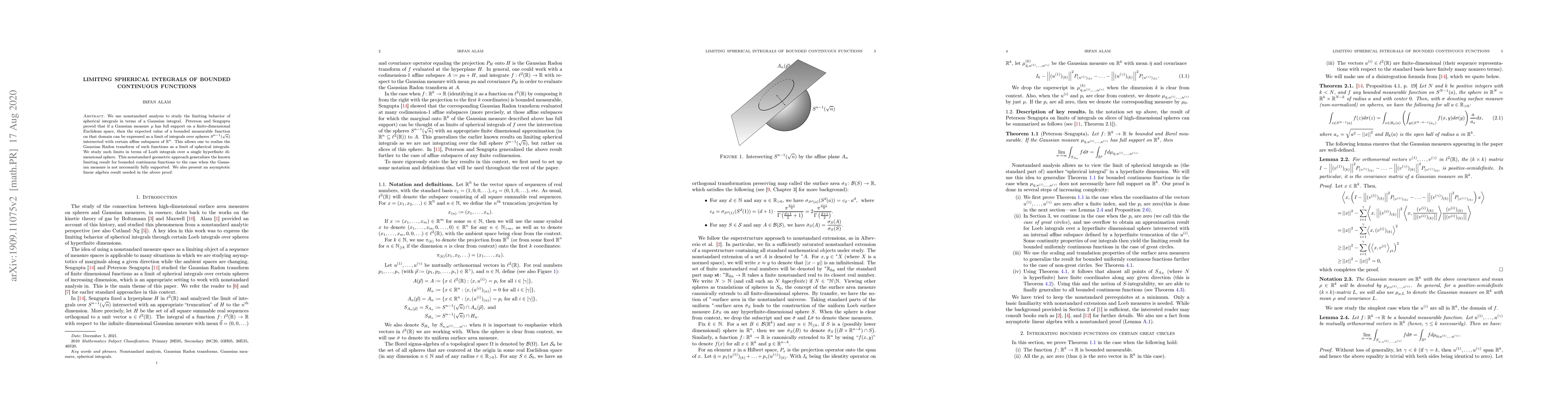 We use nonstandard analysis to study the problem of expressing a Gaussian integral in terms of the limiting behavior of a sequence of spherical integrals. Peterson and Sengupta proved that if a Gaussian measure $\mu$ has full support on a finite-dimensional Euclidean space, then the expected value of a bounded measurable function on that domain can be expressed as a limit of integrals over spheres $S^{n-1}(\sqrt{n})$ intersected with certain affine subspaces of $\mathbb{R}^n$. This allows one to realize the Gaussian Radon transform of such functions as a limit of spherical integrals. Using nonstandard analysis, we study such limits in terms of Loeb integrals over a single hyperfinite dimensional sphere. This nonstandard geometric approach generalizes the known limiting result for bounded continuous functions to the case when the Gaussian measure is not necessarily fully supported. We also present an asymptotic linear algebra result needed in the above proof.