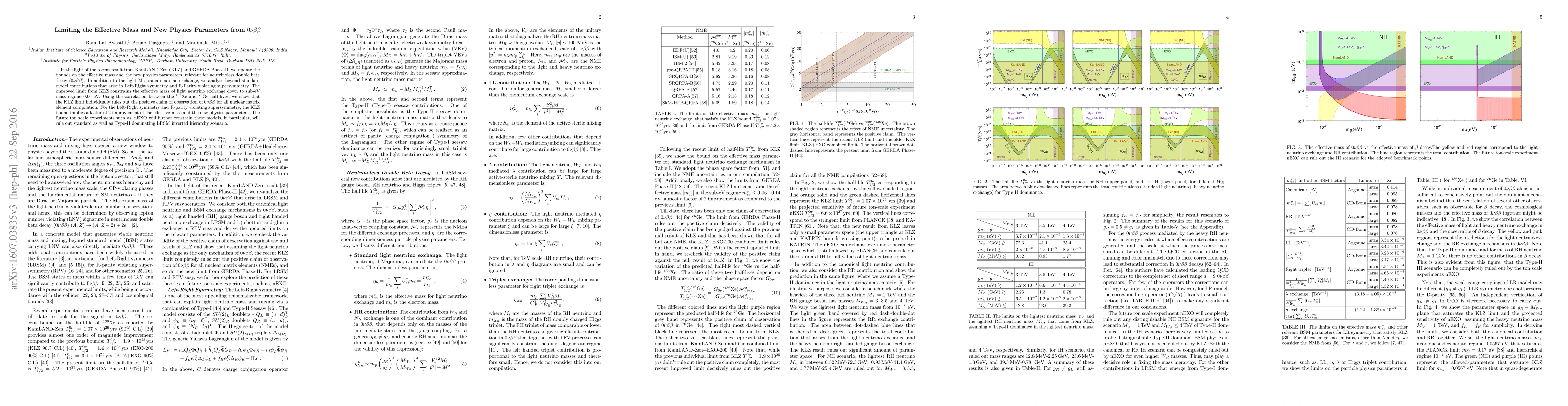 In the light of the recent result from KamLAND-Zen (KLZ) and GERDA Phase-II, we update the bounds on the effective mass and the new physics parameters, relevant for neutrinoless double beta decay ($0\nu \beta \beta$). In addition to the light Majorana neutrino exchange, we analyze beyond standard model contributions that arise in Left-Right symmetry and R-Parity violating supersymmetry. The improved limit from KLZ constrains the effective mass of light neutrino exchange down to sub-eV mass regime 0.06 eV. Using the correlation between the $^{136}\rm{Xe}$ and $^{76}\rm{Ge}$ half-lives, we show that the KLZ limit individually rules out the positive claim of observation of $0\nu\beta\beta$ for all nuclear matrix element compilation. For the Left-Right symmetry and R-parity violating supersymmetry, the KLZ bound implies a factor of 2 improvement of the effective mass and the new physics parameters. The future ton scale experiments such as, nEXO will further constrain these models, in particular, will rule out standard as well as Type-II dominating LRSM inverted hierarchy scenario.