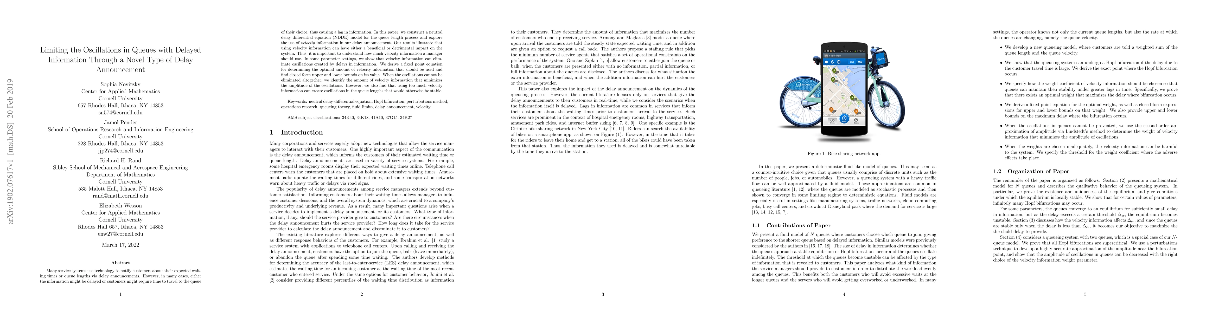 Many service systems use technology to notify customers about their expected waiting times or queue lengths via delay announcements. However, in many cases, either the information might be delayed or customers might require time to travel to the queue of their choice, thus causing a lag in information. In this paper, we construct a neutral delay differential equation (NDDE) model for the queue length process and explore the use of velocity information in our delay announcement. Our results illustrate that using velocity information can have either a beneficial or detrimental impact on the system. Thus, it is important to understand how much velocity information a manager should use. In some parameter settings, we show that velocity information can eliminate oscillations created by delays in information. We derive a fixed point equation for determining the optimal amount of velocity information that should be used and find closed form upper and lower bounds on its value. When the oscillations cannot be eliminated altogether, we identify the amount of velocity information that minimizes the amplitude of the oscillations. However, we also find that using too much velocity information can create oscillations in the queue lengths that would otherwise be stable.