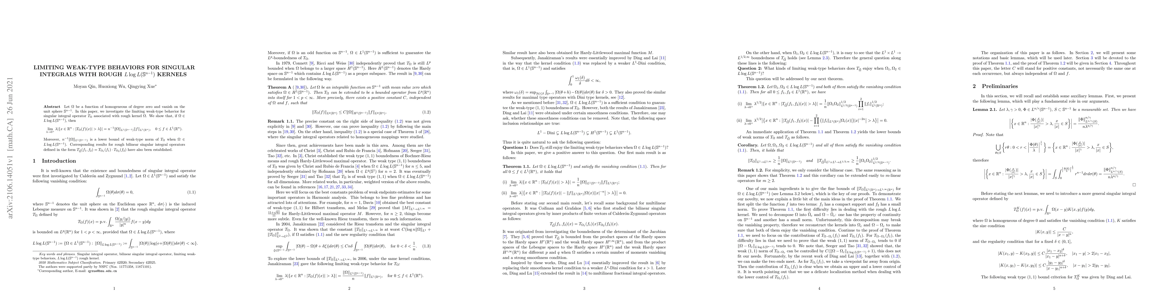 This paper examines the limiting weak-type behavior of singular integral operators $T_\Omega$ with rough kernels $\Omega \in L\log L(\mathbb{S}^n)$, showing a specific weak-type inequality and establishing a lower bound for the weak-type norm. Results also extend to rough bilinear singular integral operators.