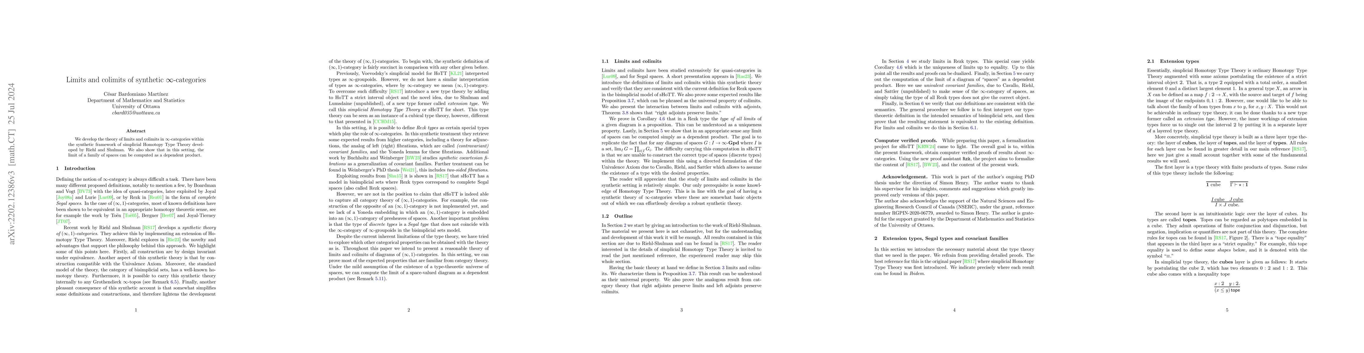 This paper develops the theory of limits and colimits in $\infty$-categories within simplicial homotopy type theory, showing their equivalence to dependent products. It also introduces a synthetic version of Conduch\'e fibrations within this framework.