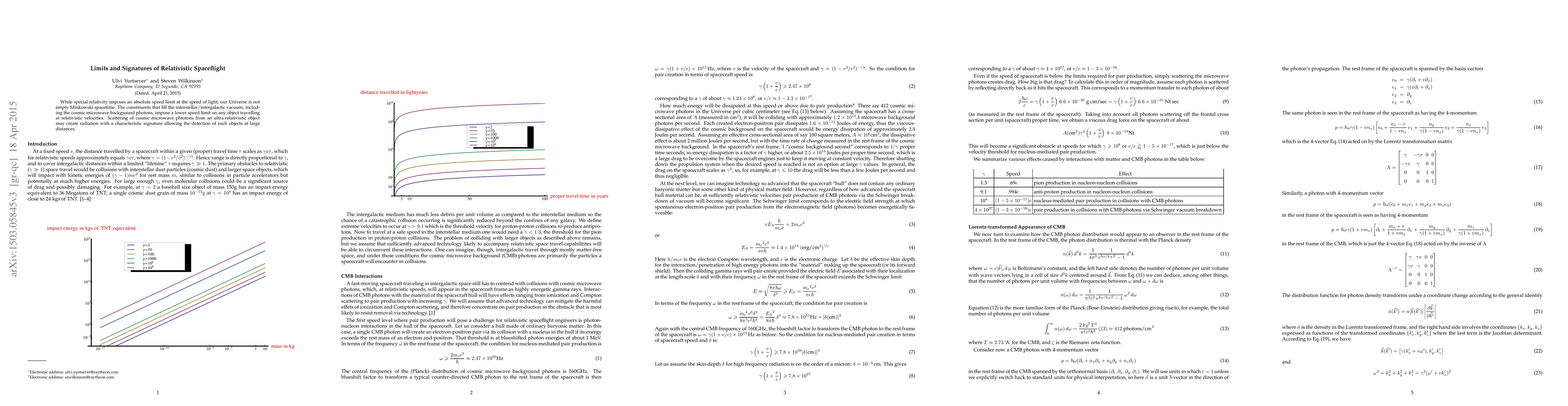 The paper discusses how the cosmic microwave background photons set a lower speed limit for relativistic objects, enabling detection of ultra-relativistic entities at vast distances through characteristic radiation signatures. It explores implications for spaceflight beyond light-speed limitations.