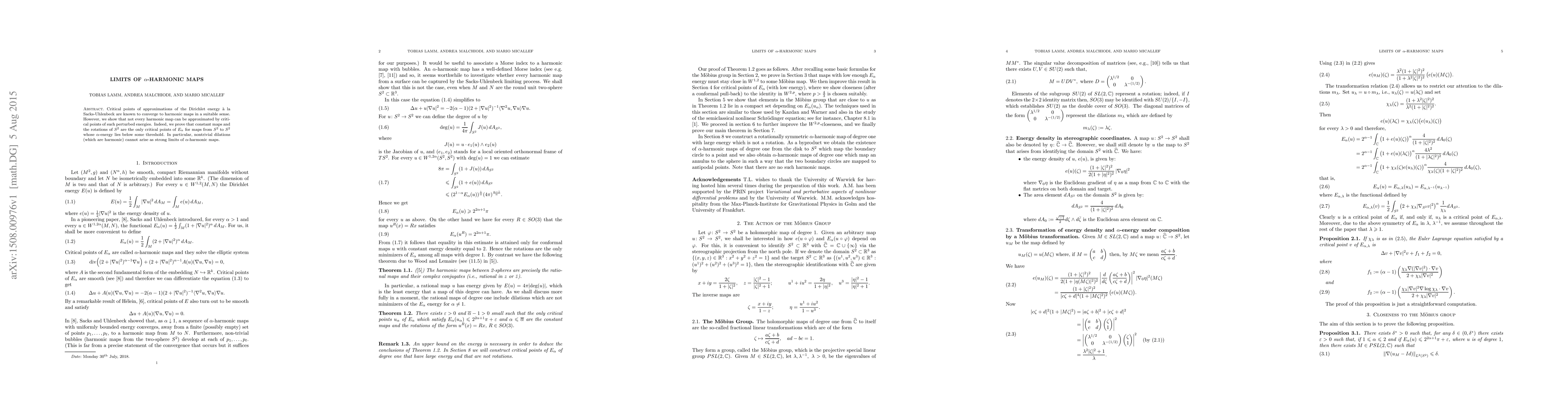 This paper shows that only constant maps and rotations of $S^2$ can be approximated by critical points of a perturbed energy function, implying nontrivial harmonic maps cannot arise as limits.