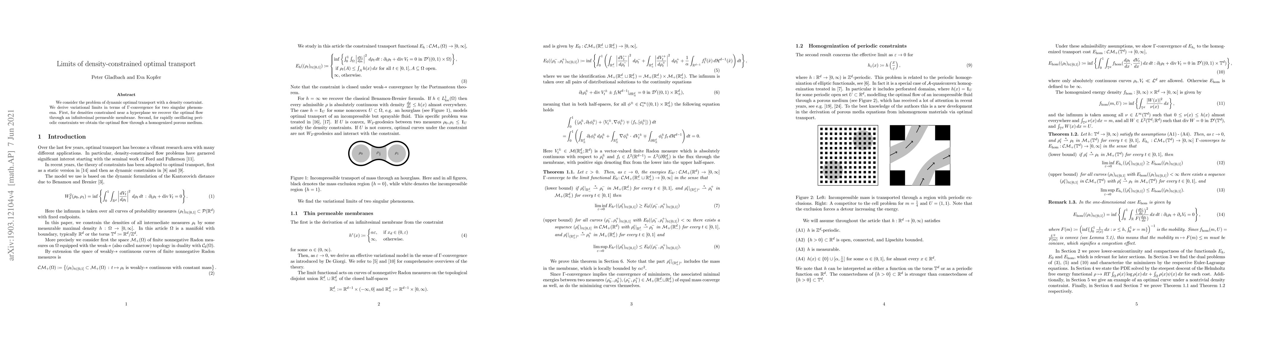 This paper explores dynamic optimal transport with density constraints, deriving variational limits via $\Gamma$-convergence for two scenarios: optimal flow through an infinitesimal permeable membrane and through a homogenized porous medium for rapidly oscillating periodic constraints.