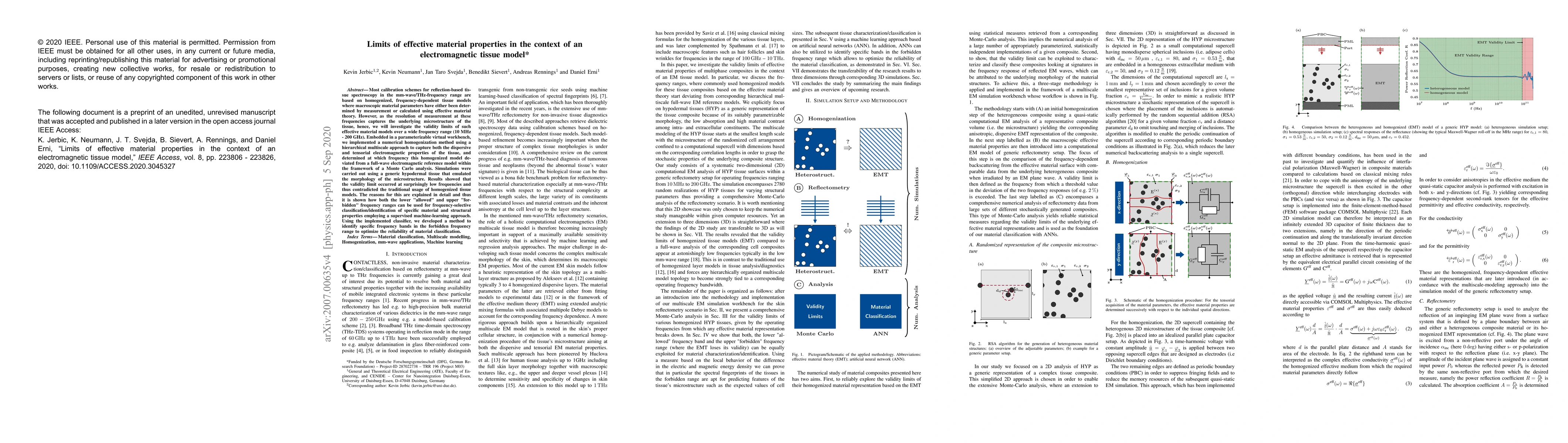Most calibration schemes for reflection-based tissue spectroscopy in the mm-wave/THz-frequency range are based on homogenized, frequency-dependent tissue models where macroscopic material parameters have either been determined by measurement or calculated using effective material theory. However, as the resolution of measurement at these frequencies captures the underlying microstructure of the tissue, here we will investigate the validity limits of such effective material models over a wide frequency range (10 MHz - 200 GHz) . Embedded in a parameterizable virtual workbench, we implemented a numerical homogenization method using a hierarchical multiscale approach to capture both the dispersive and tensorial electromagnetic properties of the tissue, and determined at which frequency this homogenized model deviated from a full-wave electromagnetic reference model within the framework of a Monte Carlo analysis. Simulations were carried out using a generic hypodermal tissue that emulated the morphology of the microstructure. Results showed that the validity limit occurred at surprisingly low frequencies and thus contradicted the traditional usage of homogenized tissue models. The reasons for this are explained in detail and thus it is shown how both the lower "allowed" and upper "forbidden" frequency ranges can be used for frequency-selective classification/identification of specific material and structural properties employing a supervised machine-learning approach. Using the implemented classifier, we developed a method to identify specific frequency bands in the forbidden frequency range to optimize the reliability of material classification.