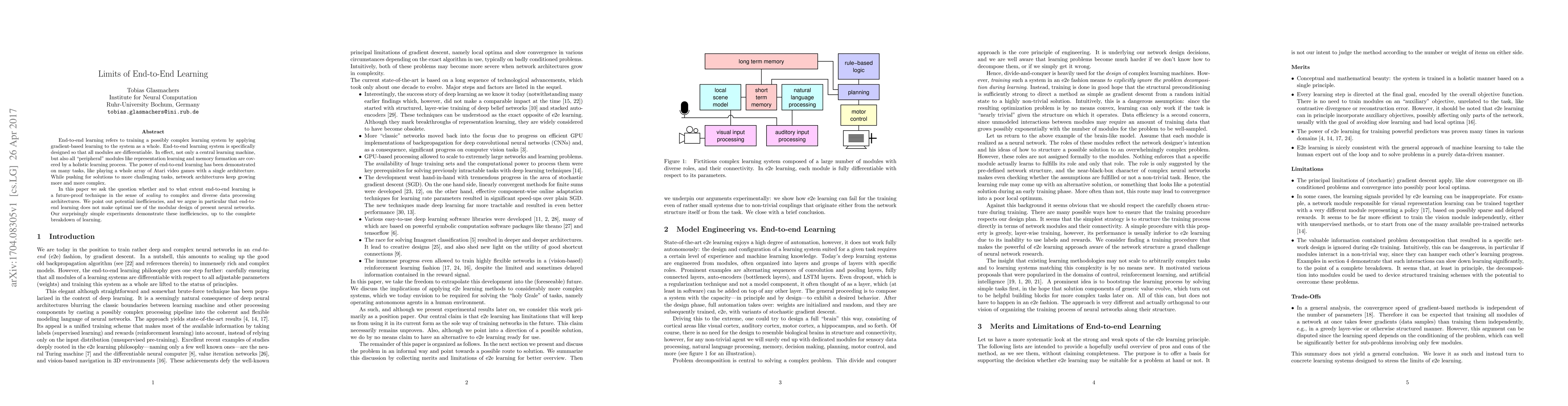 This paper investigates the scalability and efficiency of end-to-end learning in complex neural network architectures, highlighting its inefficiencies and arguing that it does not optimally utilize modular design, as demonstrated by experiments showing learning breakdown.