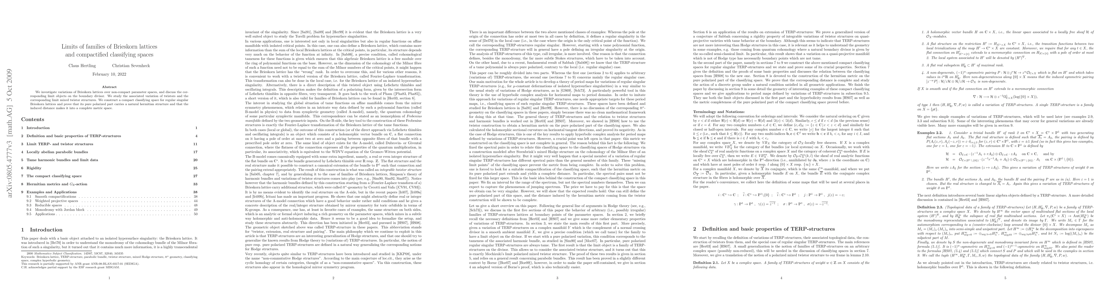 This paper studies the limits of Brieskorn lattices varying over non-compact parameter spaces and constructs a compact classifying space for these lattices, proving it has a natural hermitian structure and a complete metric.